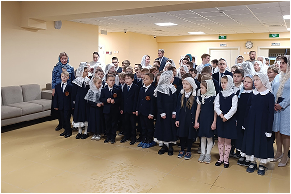 10 ноября началась вторая четверть у учеников православной гимназии имени великомученика Георгия Победоносца города Набережные Челны. После завершения строительства и подписания всех необходимых документов дети начинают учиться в новопостроенном здании школы.