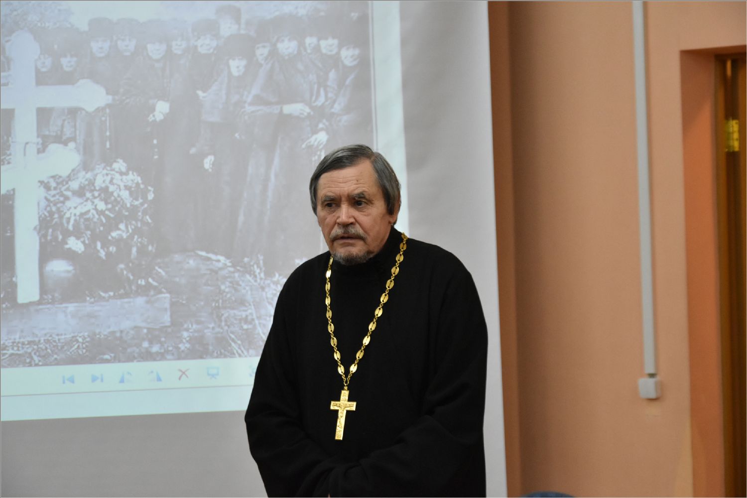 Первым выступил клирик Свято-Вознесенского кафедрального собора, руководитель епархиальной комиссии по канонизации святых диакон Дмитрий Русин. Священнослужитель рассказал о священниках и мирянах, которые пострадали от репрессий в годы советской власти.
