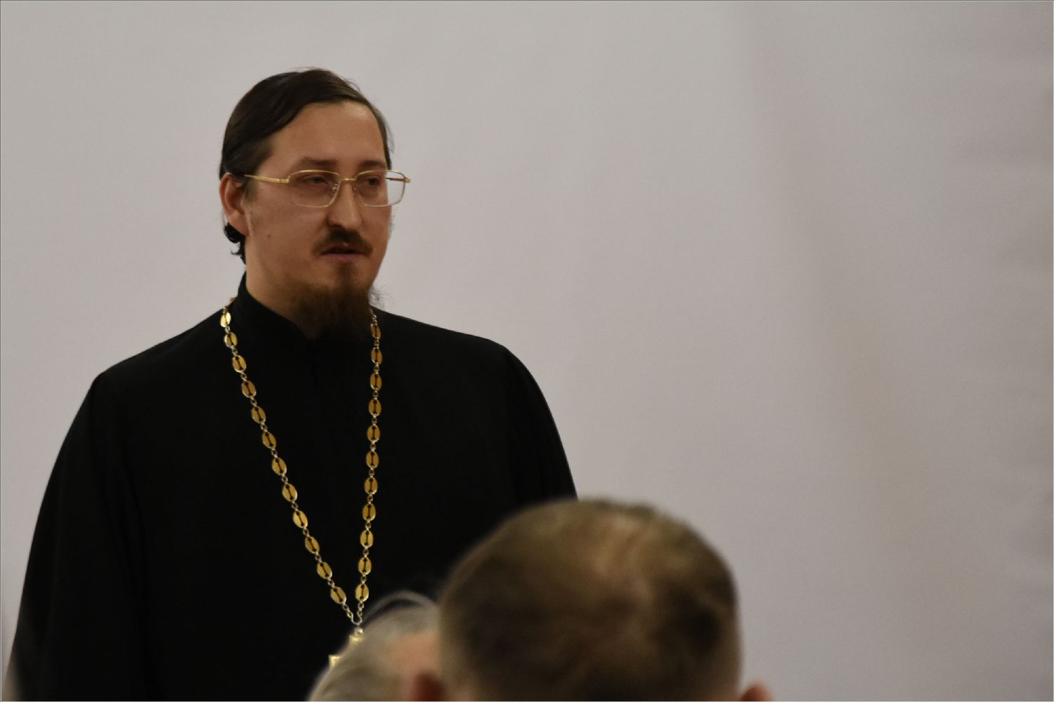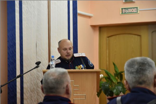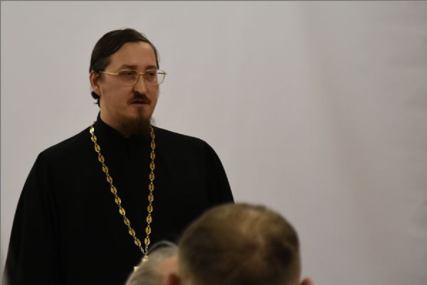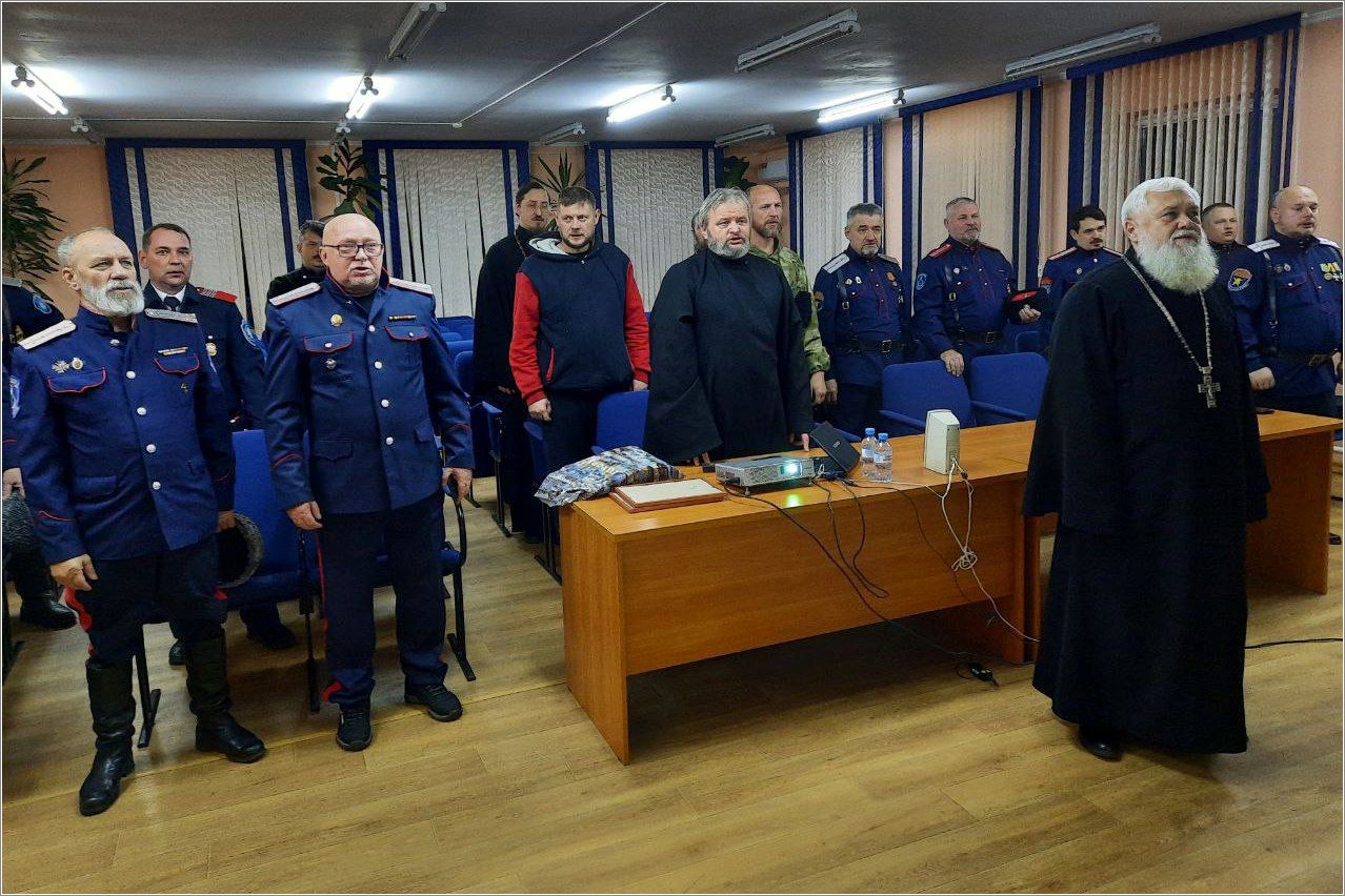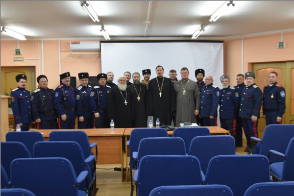 Иерей Дмитрий Веретнов поделился знаниями, полученным на курсах повышения квалификации руководителей и сотрудников епархиальных отделов по взаимодействию с казачеством, которые были проведены в Москве в Общецерковной аспирантуре и докторантуре имени святых равноапостольных Кирилла и Мефодия.