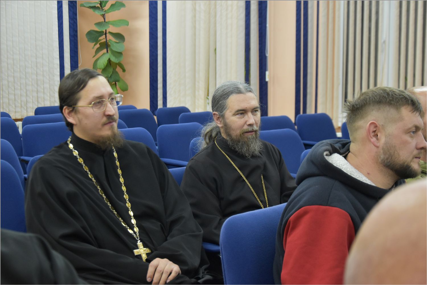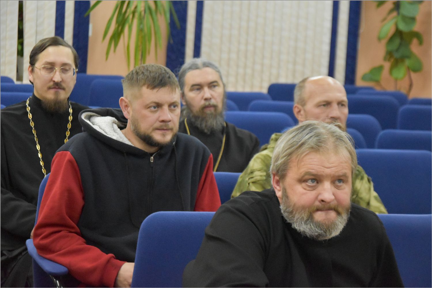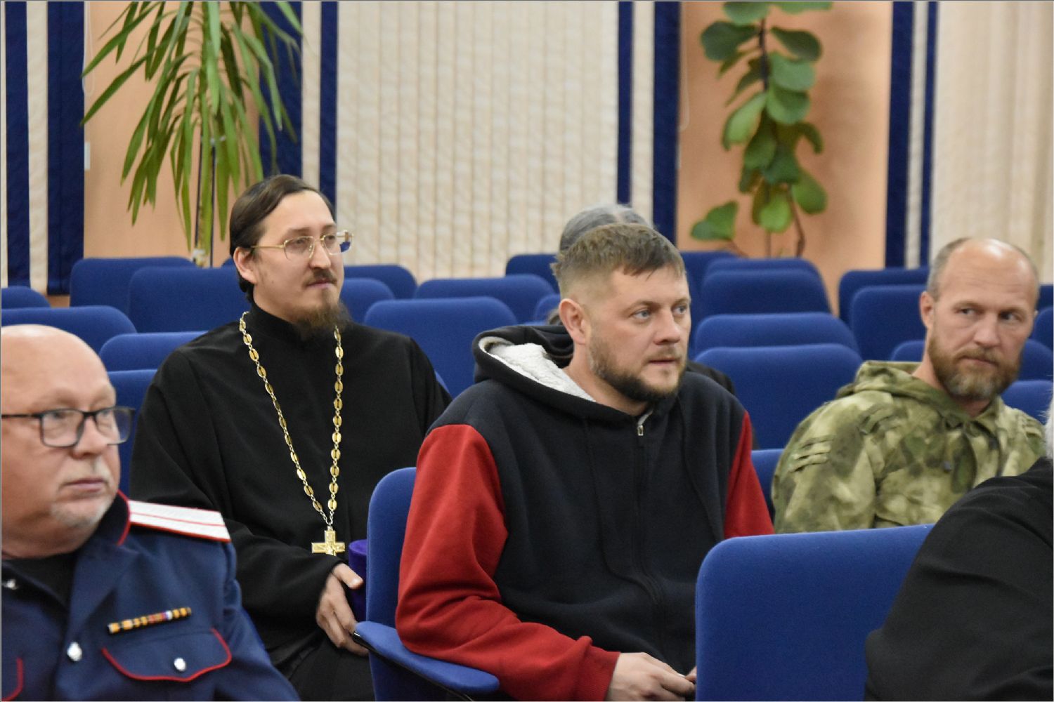 Иерей Дмитрий Веретнов поделился знаниями, полученным на курсах повышения квалификации руководителей и сотрудников епархиальных отделов по взаимодействию с казачеством, которые были проведены в Москве в Общецерковной аспирантуре и докторантуре имени святых равноапостольных Кирилла и Мефодия.
