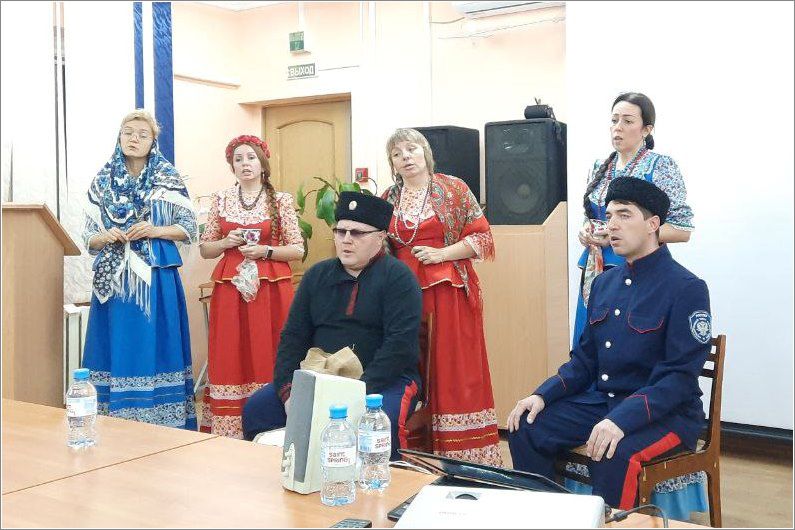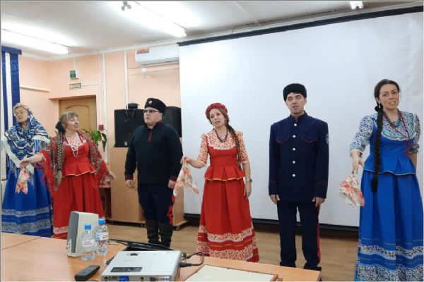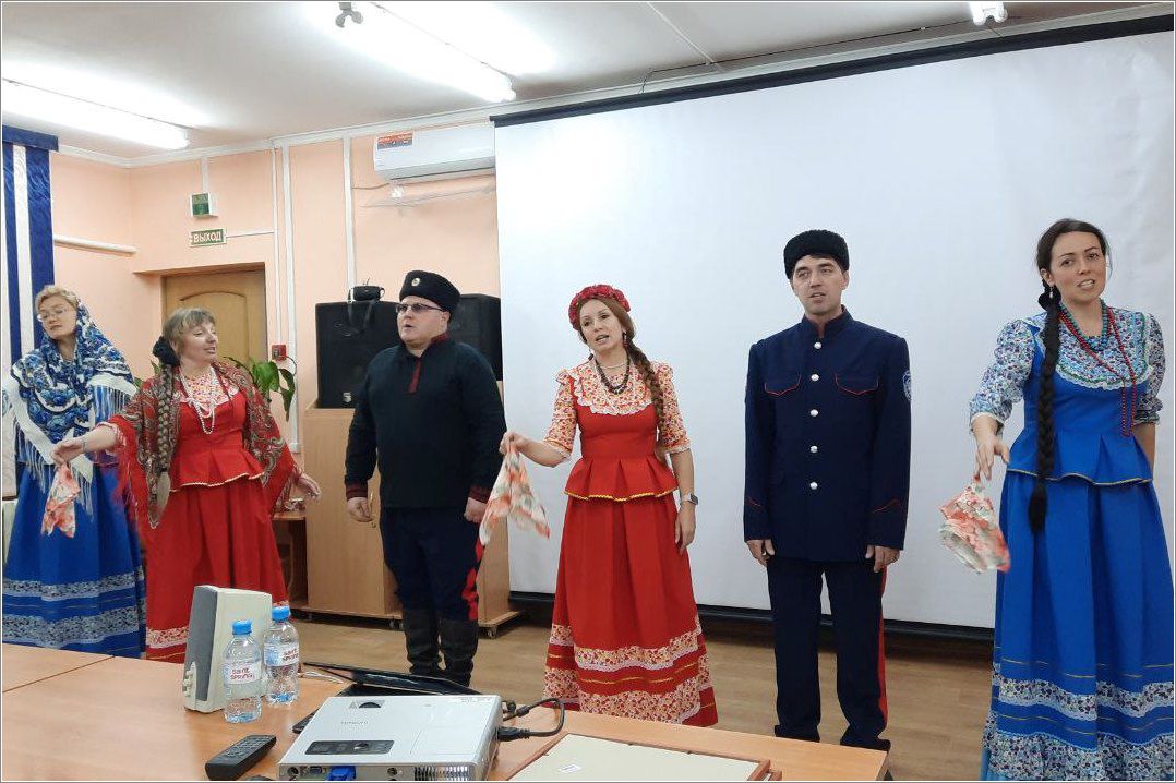 Перед началом встречи перед собравшимися выступил коллектив «Казачья станица», действующий при Свято-Вознесенском кафедральном соборе.
