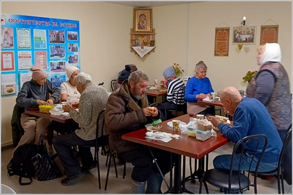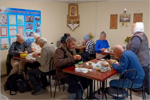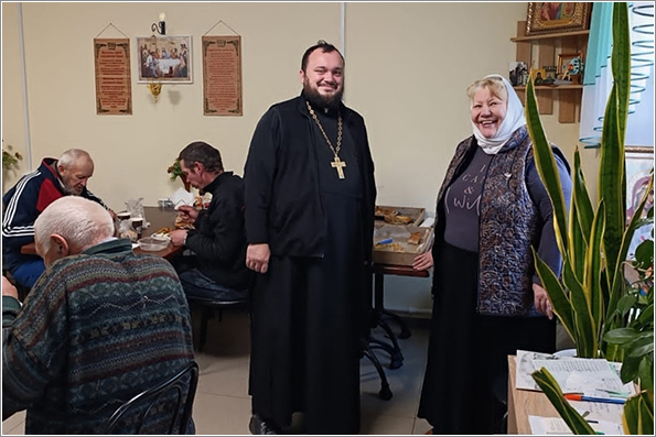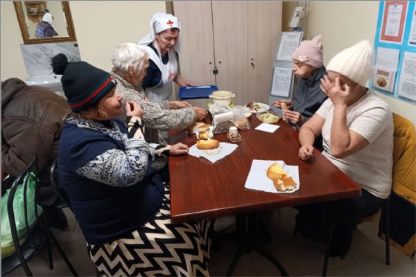 Добрые и щедрые душой благодетели позаботились об угощении и приготовили для посетителей Дома Милосердия по-домашнему вкусный и сытный обед. Пообедали 60 человек.