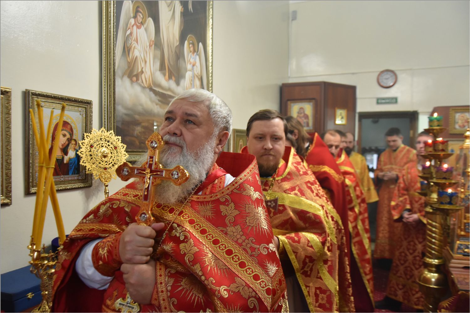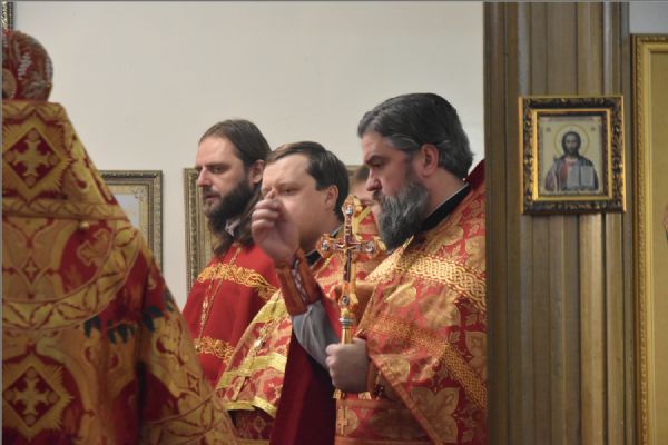 На мирной и сугубой ектениях были вознесены молитвы о Российском воинстве и о мире. После сугубой ектении была вознесена молитва о здравии Святейшего Патриарха Кирилла. 20 декабря исполнилось 79 лет Святейшему Патриарху Московскому и всея Руси Кириллу.