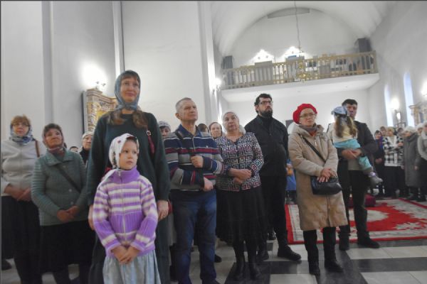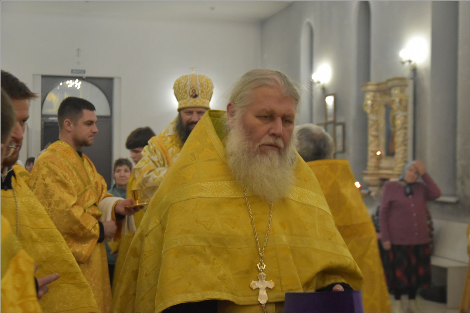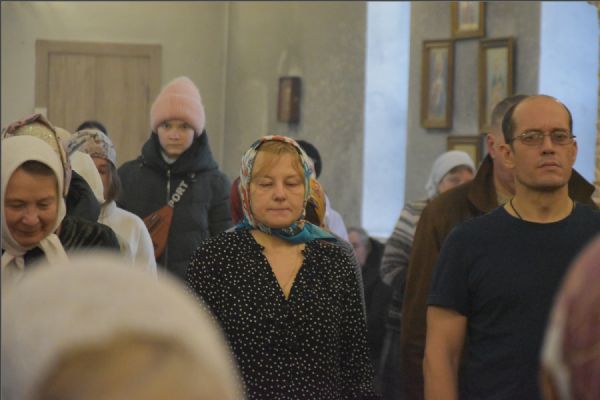 На мирной и сугубой ектениях были вознесены молитвенные прошения о Российском воинстве и о мире. По запричастном стихе проповедь произнёс иерей Алексий Носов.