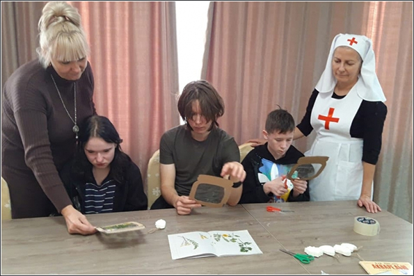 Затем сестры милосердия изготовили с детьми декоративную композицию «Травы моей Родины» с использованием засушенных трав и цветов, после чего состоялось дружеское чаепитие со сладостями.