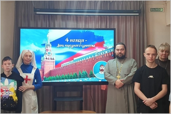 В ГБУ для детей-сирот и детей, оставшихся без попечения родителей «Елабужский детский дом», все уже давно знают и любят этих «ангелов в белых платочках». Последняя встреча с воспитанниками была посвящена Дню народного единства: «Я — россиянин», которую провел настоятель храма священномученика Павла Дернова иерей Илия Кривов. Батюшка рассказал об истории возникновения праздника, о ценностях, помогающих людям разных культур жить в мире на территории нашей страны, и о роли фундаментальных религий в укреплении взаимного уважения.