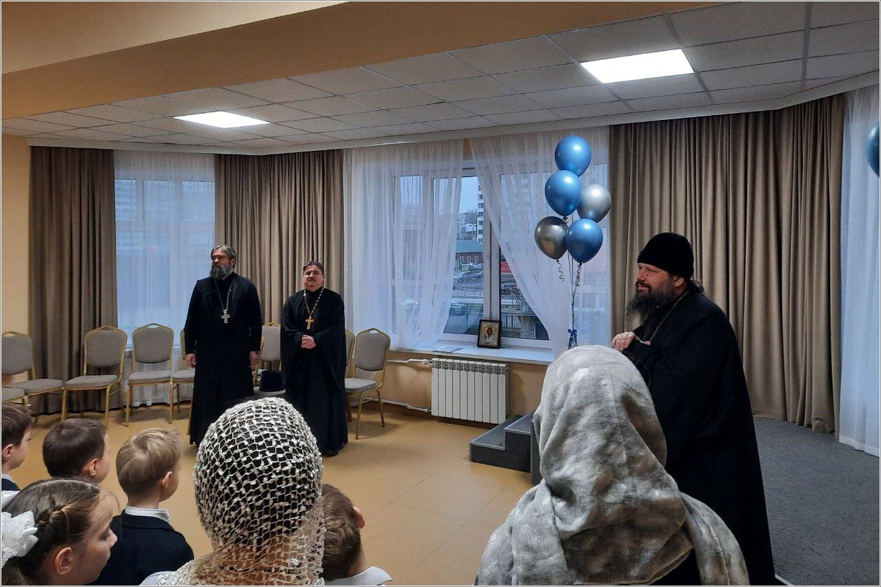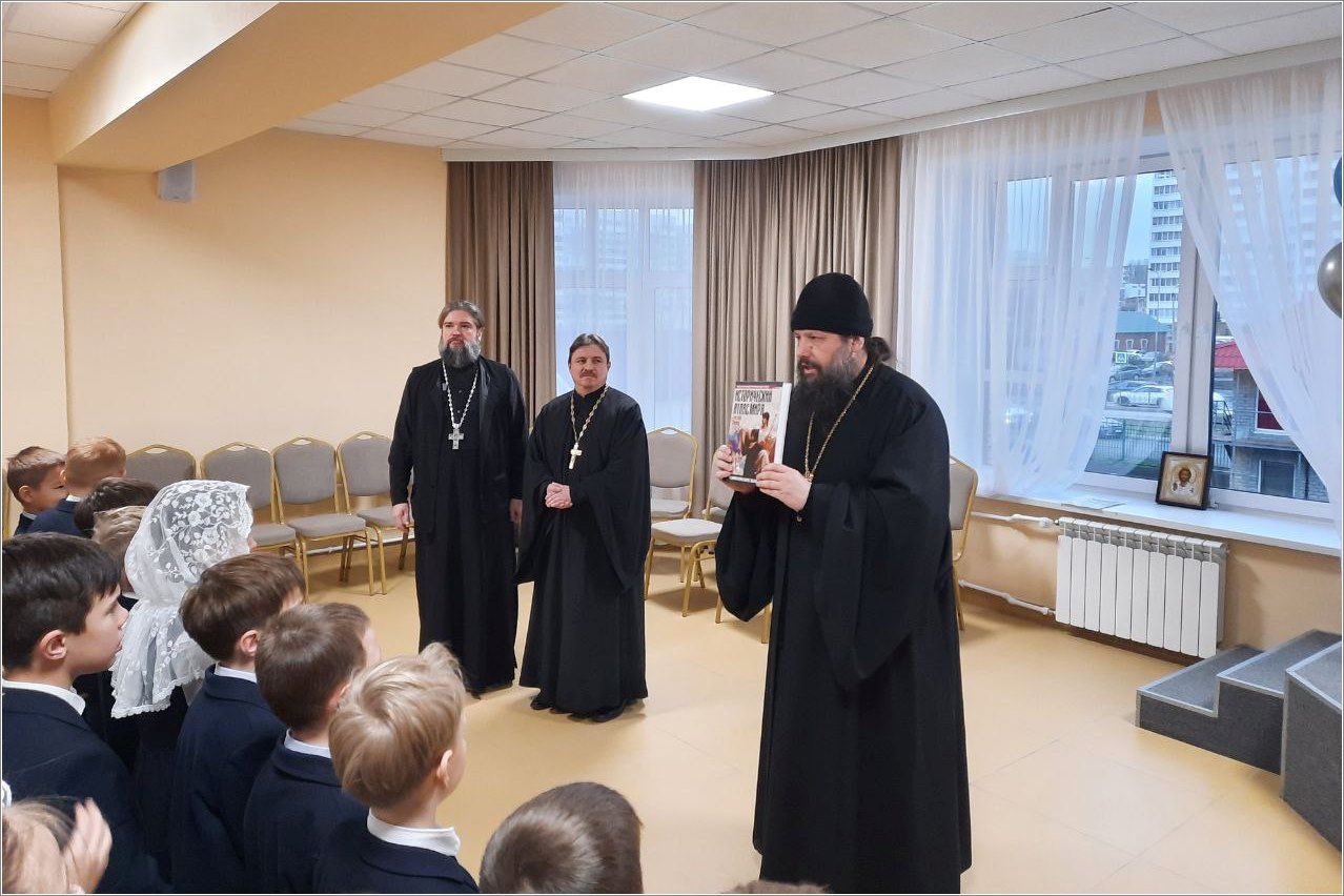 Преподав архипастырское благословение ученикам и учителям, архиерей посетил некоторые учебные занятия в школе.