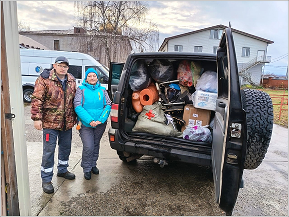 Новая отправка в мотострелковый батальон ТРО, 201-й полк третьего батальона, ОМОН и 120-ю артиллерийскую бригаду содержала воздушный компрессор, распылитель для него и шланг, квадрокоптер, инвенторный генератор, сети, хвостовики на мины для коптеров, ампульницы для нефопама, средства личной гигиены, блиндажные свечи, продукты питания, теплые жилеты, средства личной гигиены и вещи первой необходимости.
