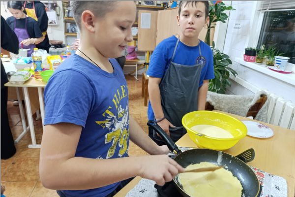 В преддверии праздника Дня матери воспитанники Клуба юных спасателей «Спас» при Свято-Вознесенском кафедральном соборе собрались вместе, чтобы кто-то — научиться, а кто-то — прокачать свои навыки в искусстве выпечки блинчиков, и порадовать любимую маму вкусным лакомством.