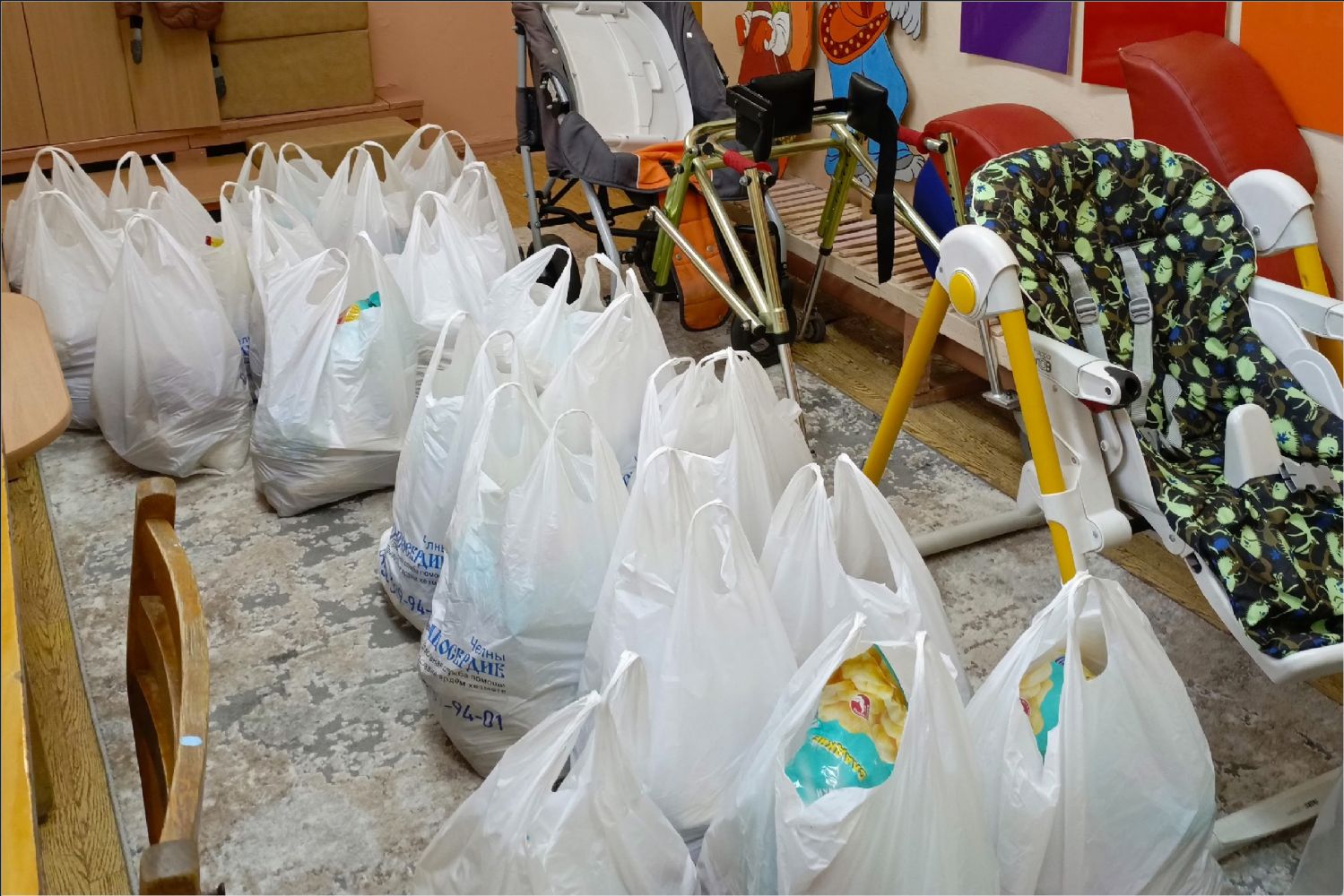 27 продуктовых наборов, 3 больших тёплых непромокаемых коврика привез 1 декабря батюшка для детишек .