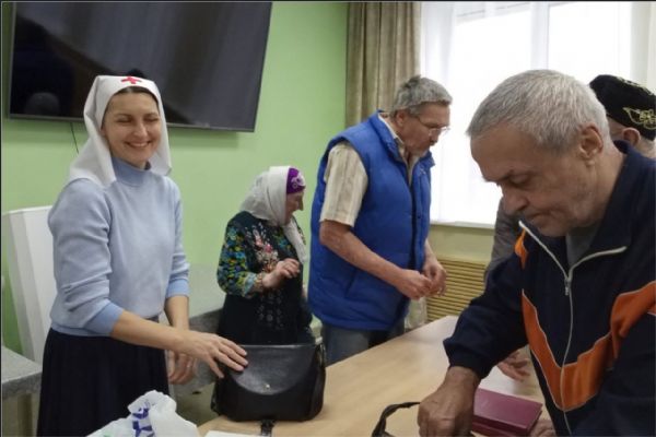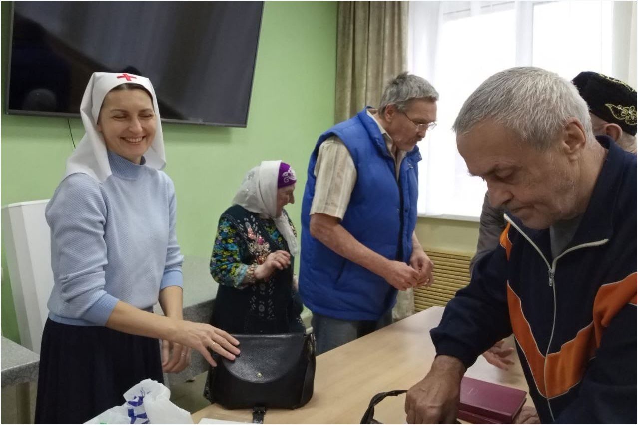 В этот же день сестры милосердия посетили Набережночелнинский дом-интернат для престарелых и инвалидов и передали 30 простыней на резинке и пироги для угощения проживающих.