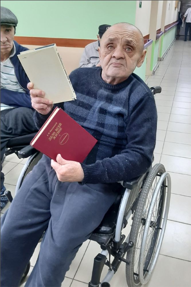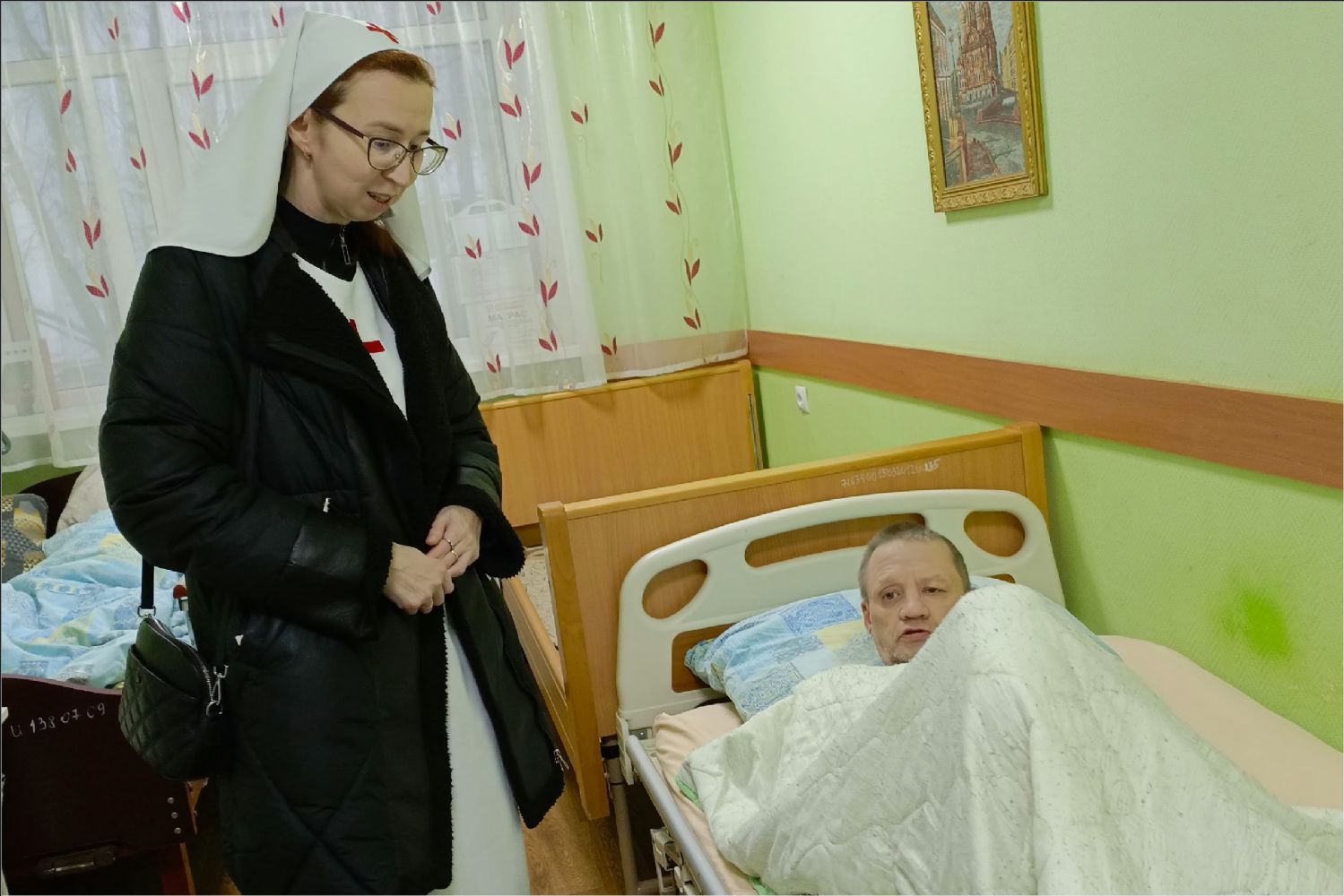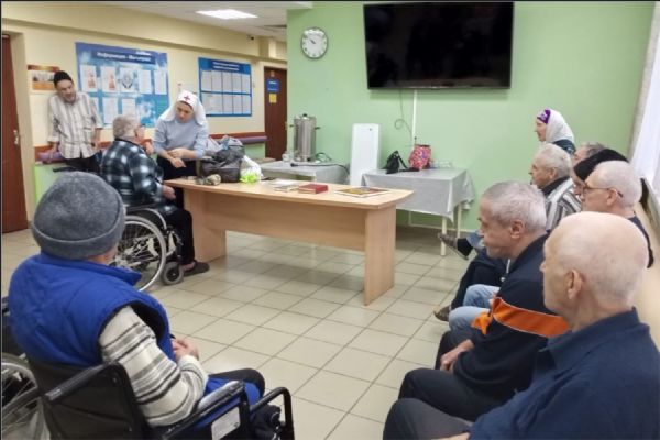 Пообщались с сотрудниками и подопечными. Постарались привезти всё, что они просили в прошлую встречу: теплые вещи, калоши, простыни на резинке, мусульманские четки, книги, молитвословы, канцтовары, крестики, иконы. Также привезли вкусные пироги к чаю. Записали имена о здравии и об упокоении. Наметили дату следующего посещения и необходимую помощь от сестричества.