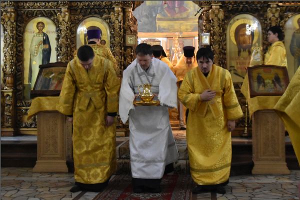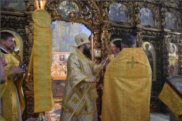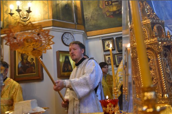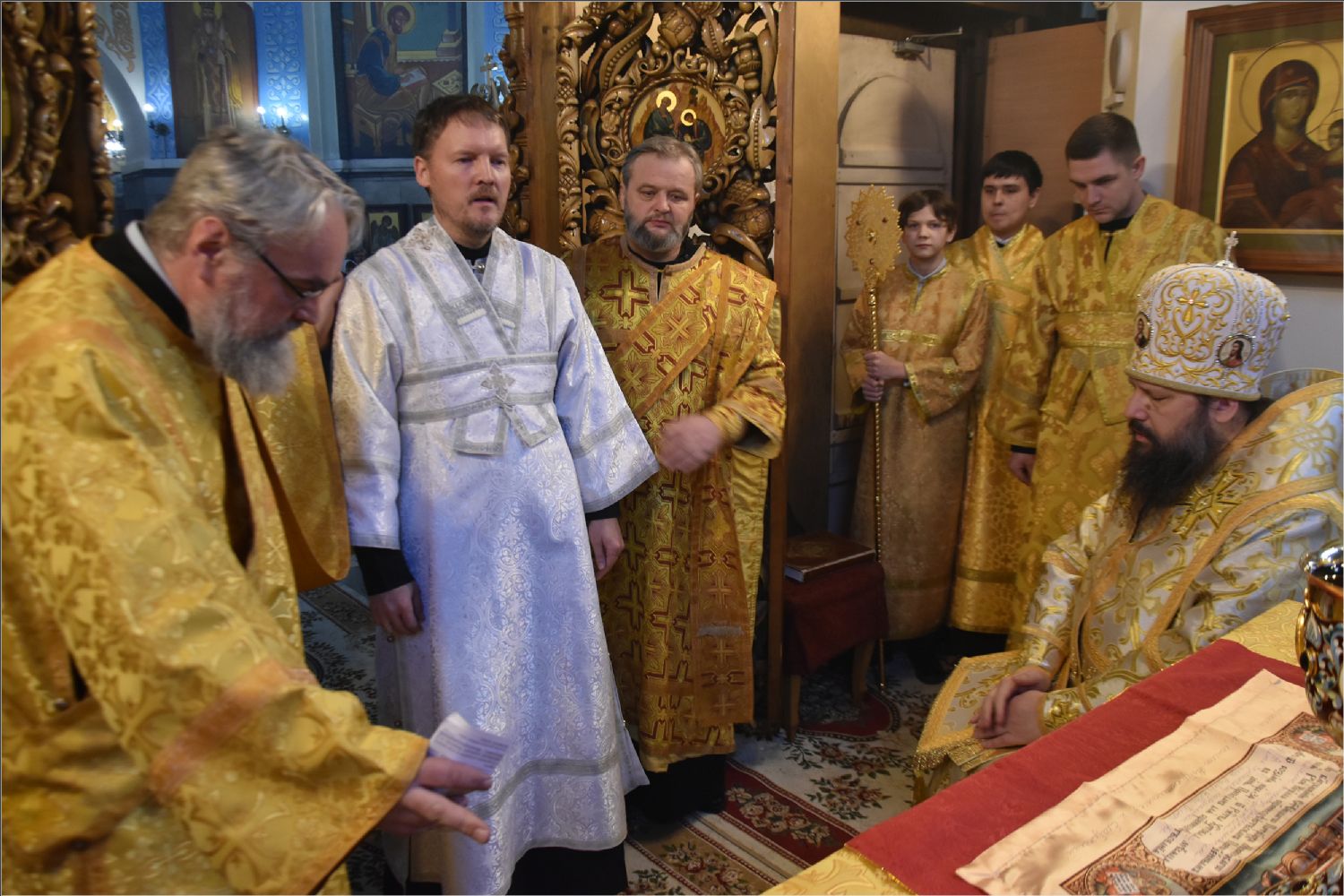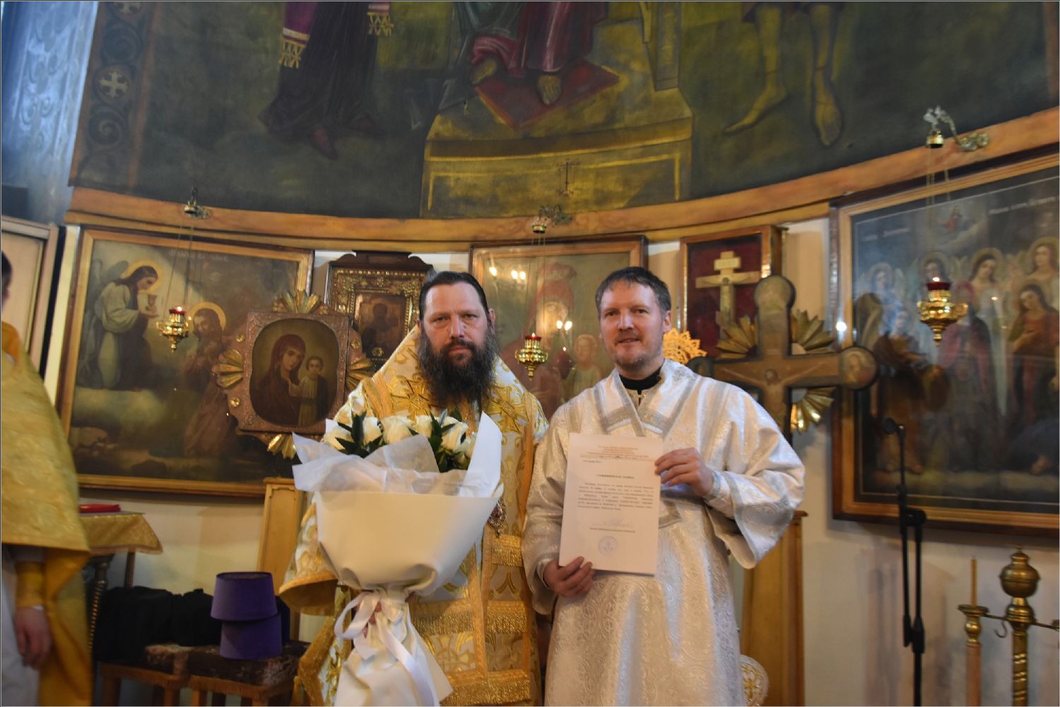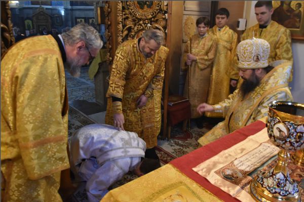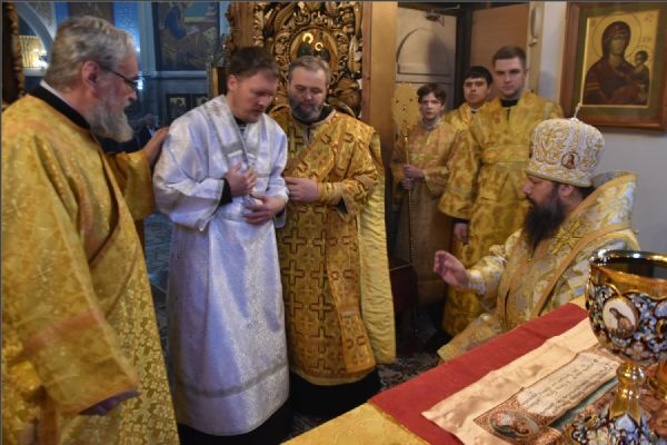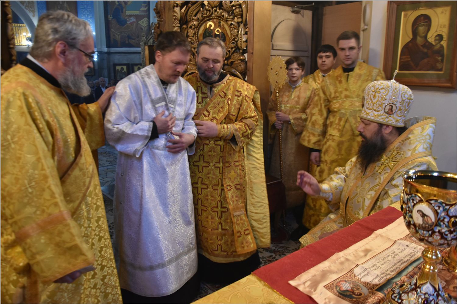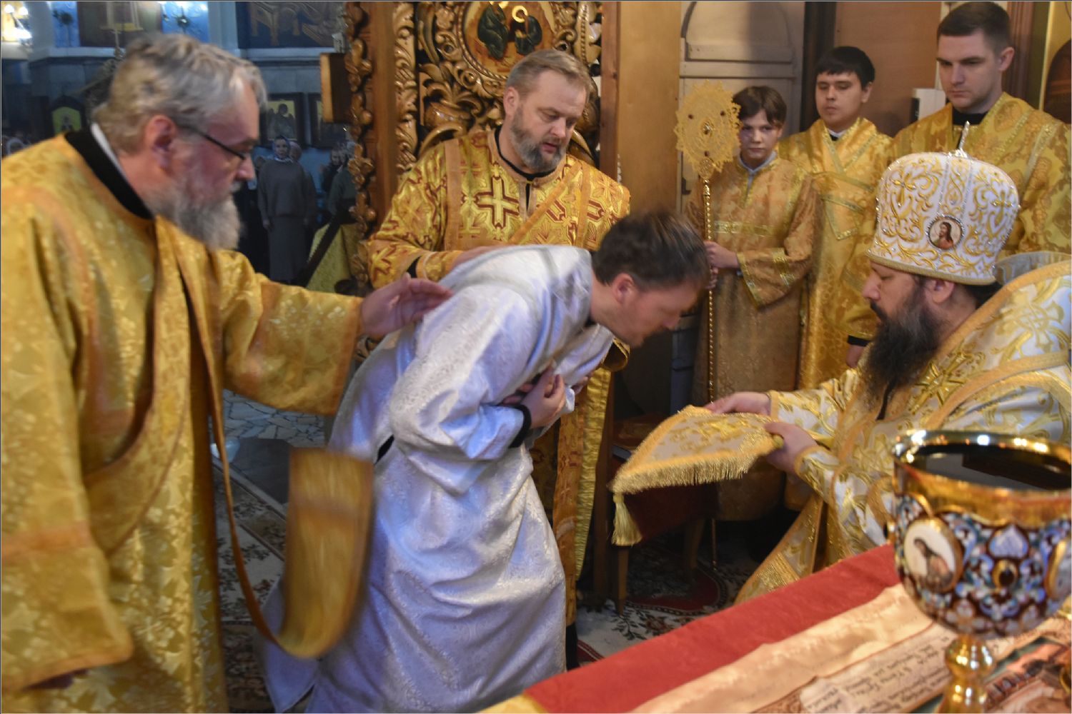После Евхаристического канона была совершена хиротония иподиакона Антония Тренихина в диаконы. В своем слове архипастырь поздравил диакона Антония с рукоположением, вручил ему богослужебную просфору.