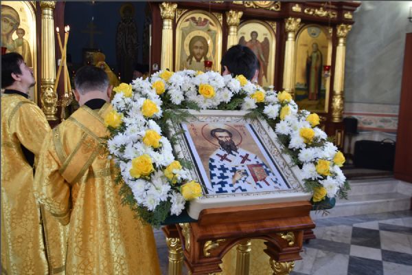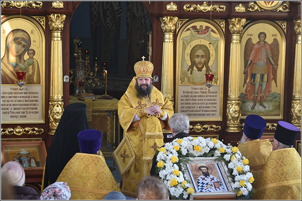 По завершении богослужения было совершено славление святителю. Также было воспето многолетие отцу Амвросию, который был пострижен с наречением имени святителя.