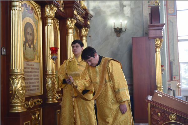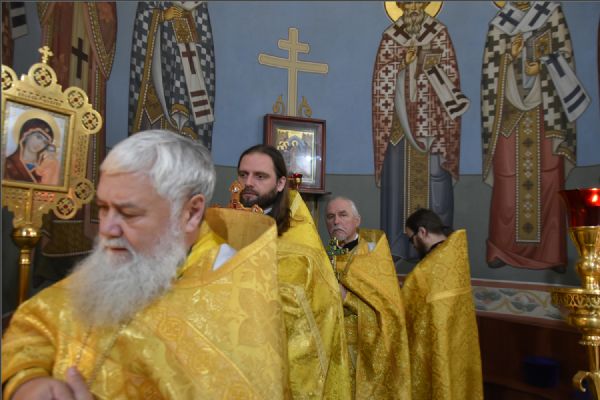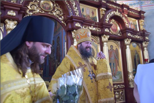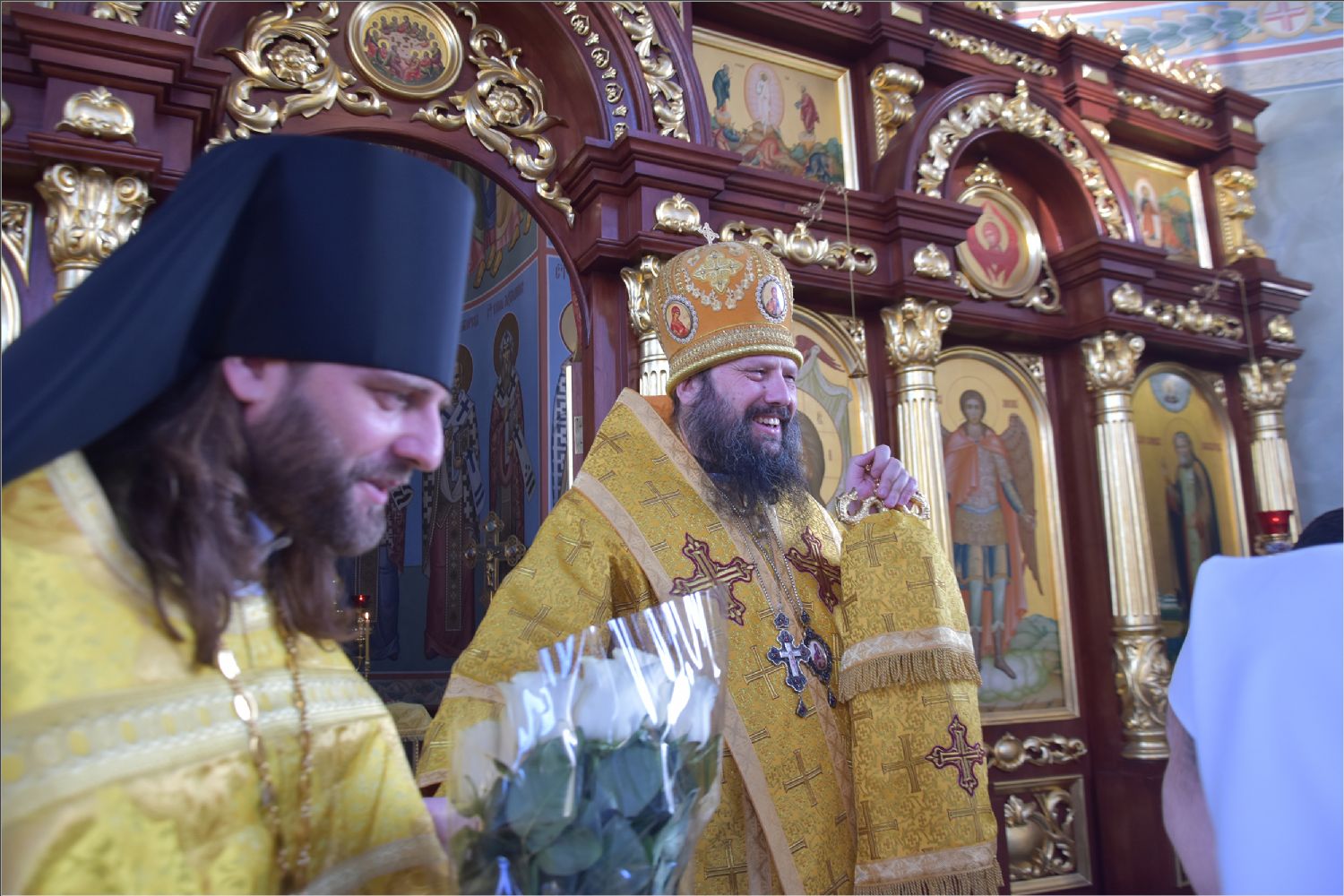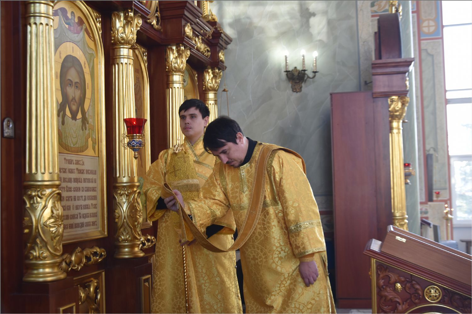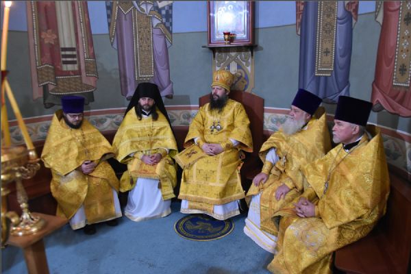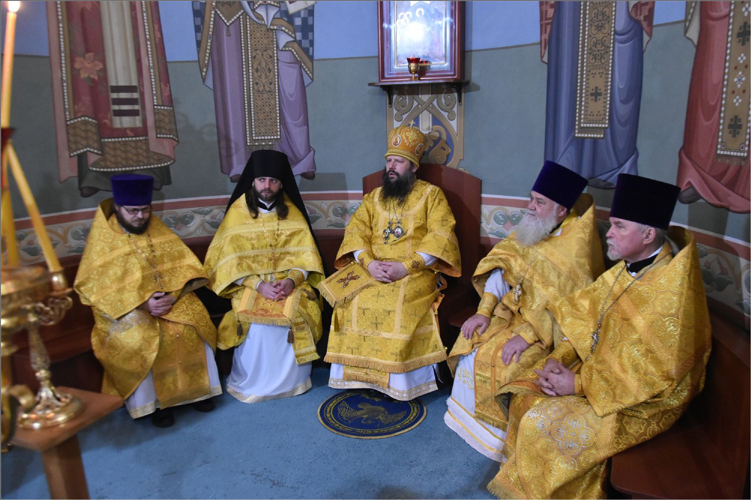 Его Преосвященству сослужили благочинный Закамского округа протоиерей Андрей Дубровин, настоятель храма преподобного Серафима Саровского города Набережные Челны иеромонах Амвросий (Степанюк) и клирики прихода протоиерей Сергий Козлов и иерей Александр Макариков. Диаконский чин возглавил протодиакон Дмитрий Половников.