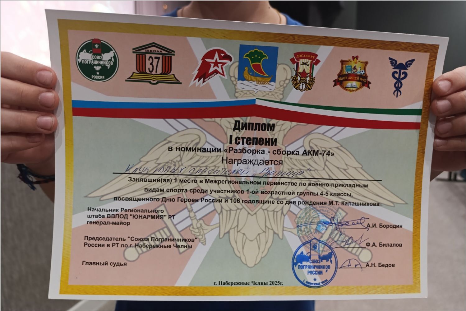 5 декабря в МБОУ СОШ № 42 состоялся финал межрегионального первенства по военно-прикладным видам спорта, посвященного Дню Героев России и 106 -й годовщине со дня рождения И.Т. Калашникова. С приветственным словом выступили: полковник запаса, ветеран Военных Сил Российской Федерации Георгий Макану, представители общественной организации Союз пограничников России Фоат Билалов, Рамиль Фатхуллин, директор МБОУ СОШ №42 Вадим Матюшин, председатель правления ДМОО «Штурм» г. Набережные Челны и педагог Клуба юных спасателей «Спас» по военно-патриотическому воспитанию Александр Бедов.