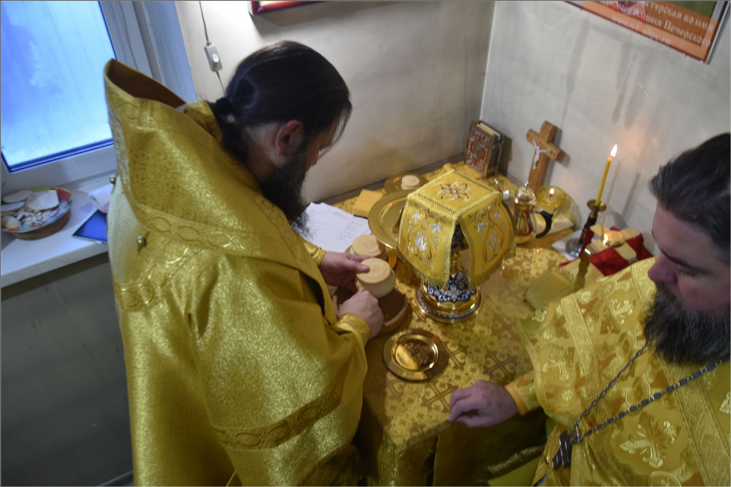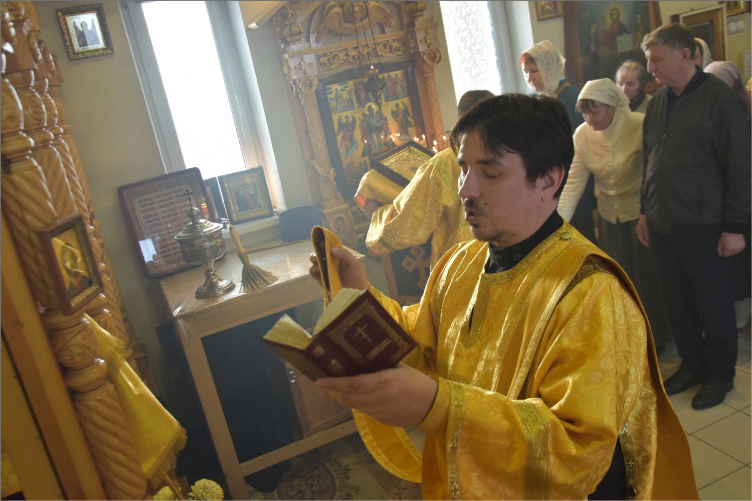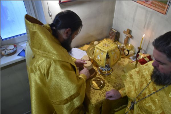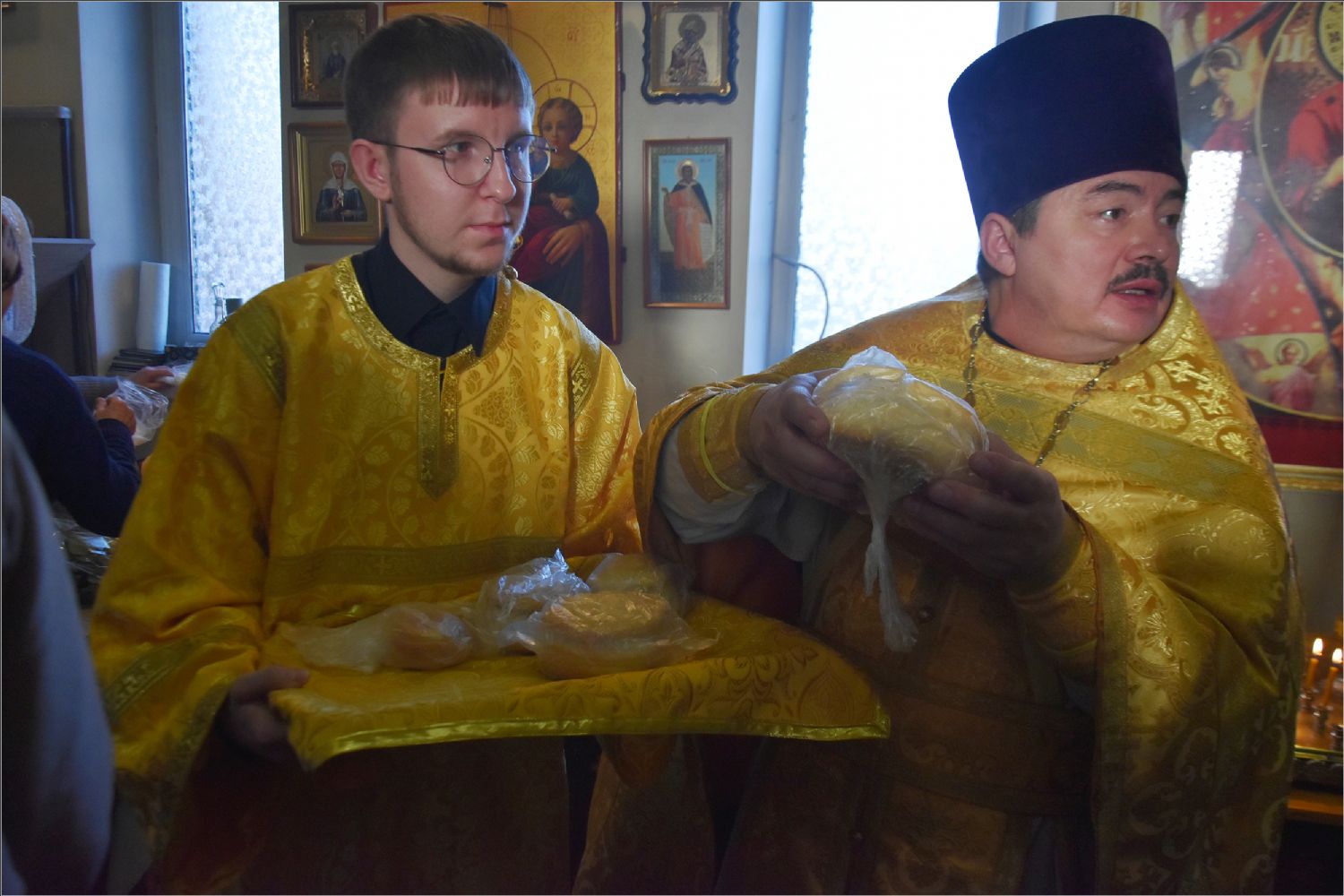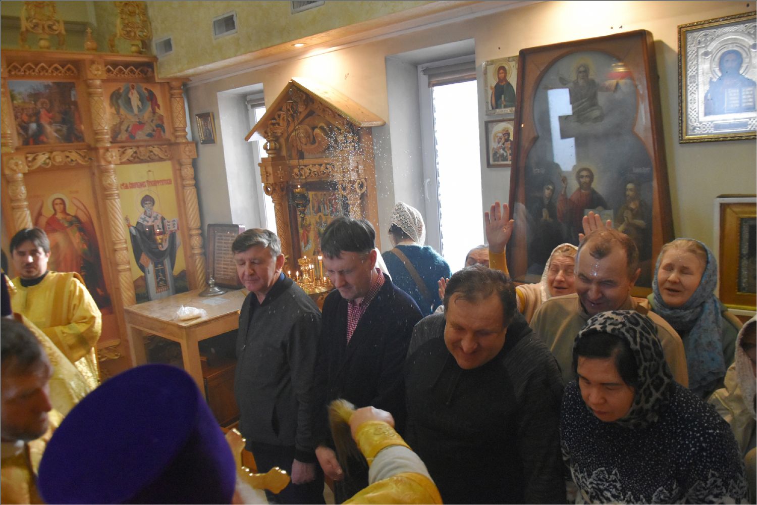 На мирной и сугубой ектениях Литургии были вознесены молитвы о Российском воинстве и о мире. По запричастном стихе проповедь произнёс протоиерей Рафаил Миронов, который рассказал о житии и чудесах святителя.
