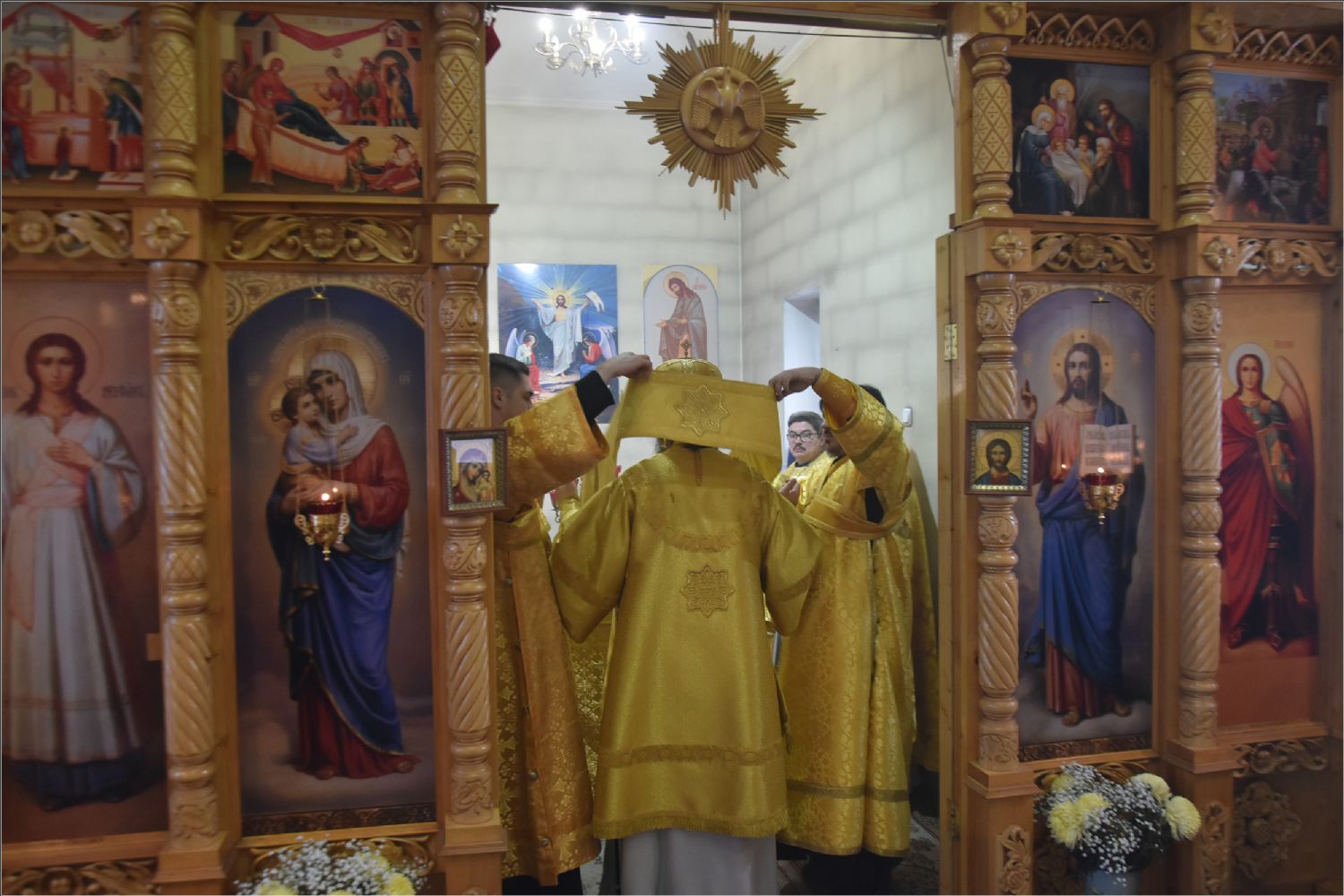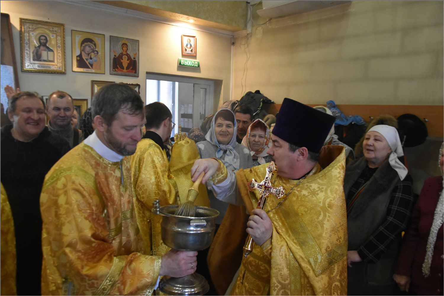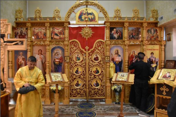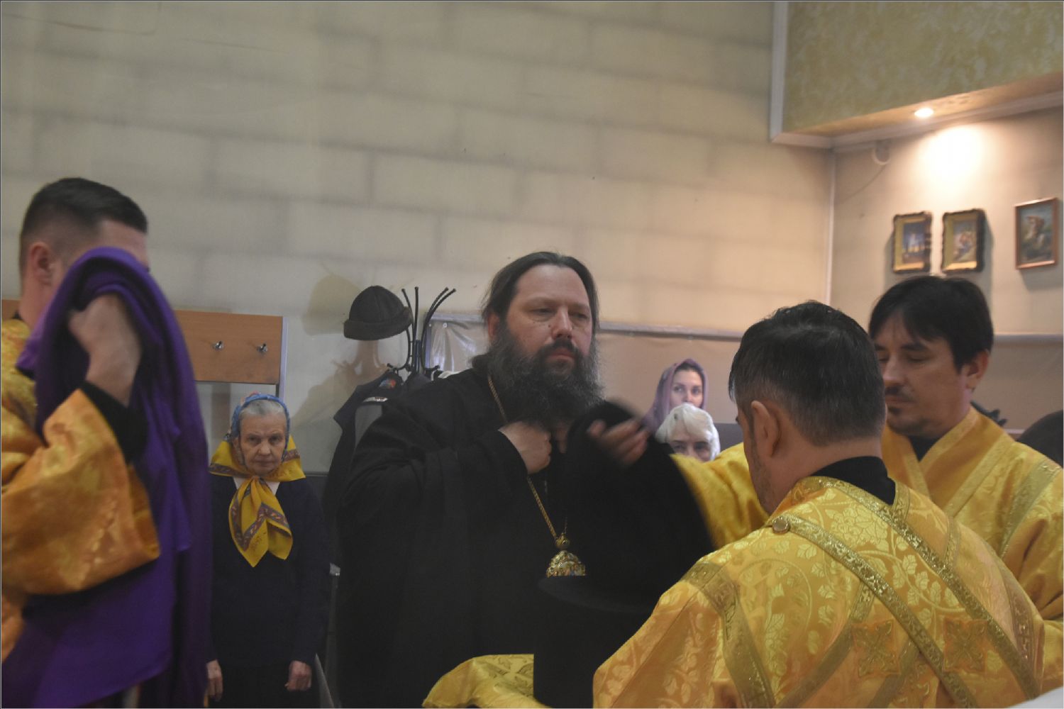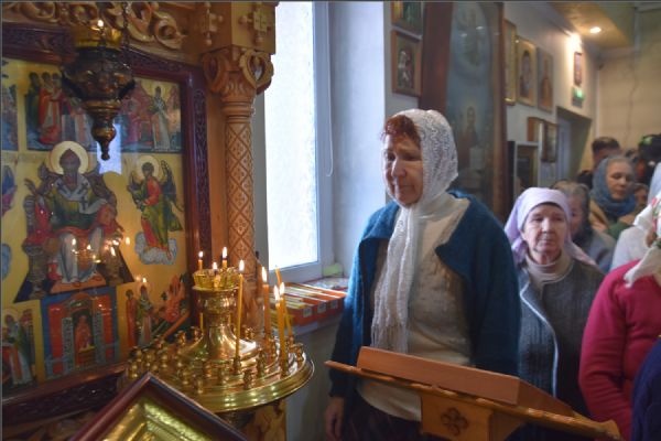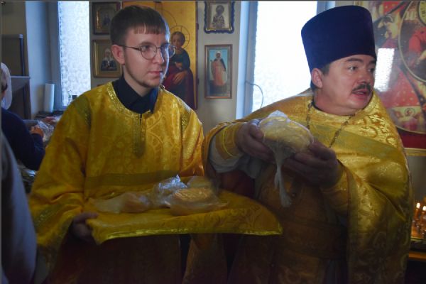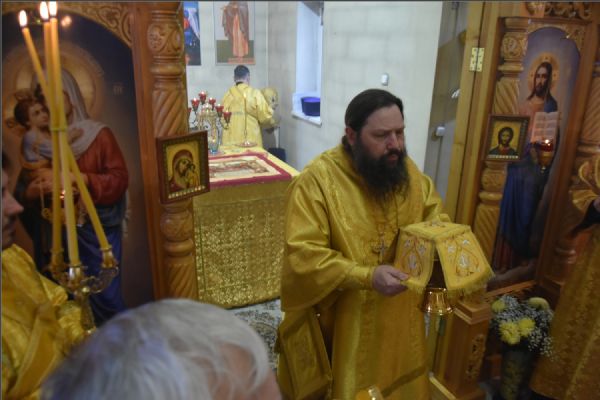 На мирной и сугубой ектениях Литургии были вознесены молитвы о Российском воинстве и о мире. По запричастном стихе проповедь произнёс протоиерей Рафаил Миронов, который рассказал о житии и чудесах святителя.