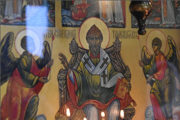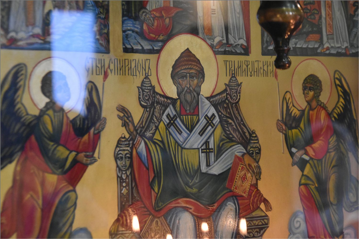 «На острове Кипре был греческий город Тримифунт, теперь это маленькая турецкая деревенька. До того, как разделили остров Кипр, там жили греки и турки вместе, в мире, любви и согласии. И греки, и турки любили Спиридона. И христиане ходили ему молиться, и мусульмане — и он всем помогал. А потом началась война и разделили остров напополам, и Тримифунт оказался на турецкой стороне. До сих пор сохранилось место, где служил святитель Спиридон. Мощей святого давно там уже нет. Мощи святителя все время спасали от врагов. Сначала от арабских пиратов перевезли их в Константинополь, в Царьград. Прошло тысячу лет, и уже турки захватили Константинополь. Один благочестивый старец спрятал в мешок мощи и с огромным трудом переправил на остров Корфу, где сейчас эти мощи и находятся.