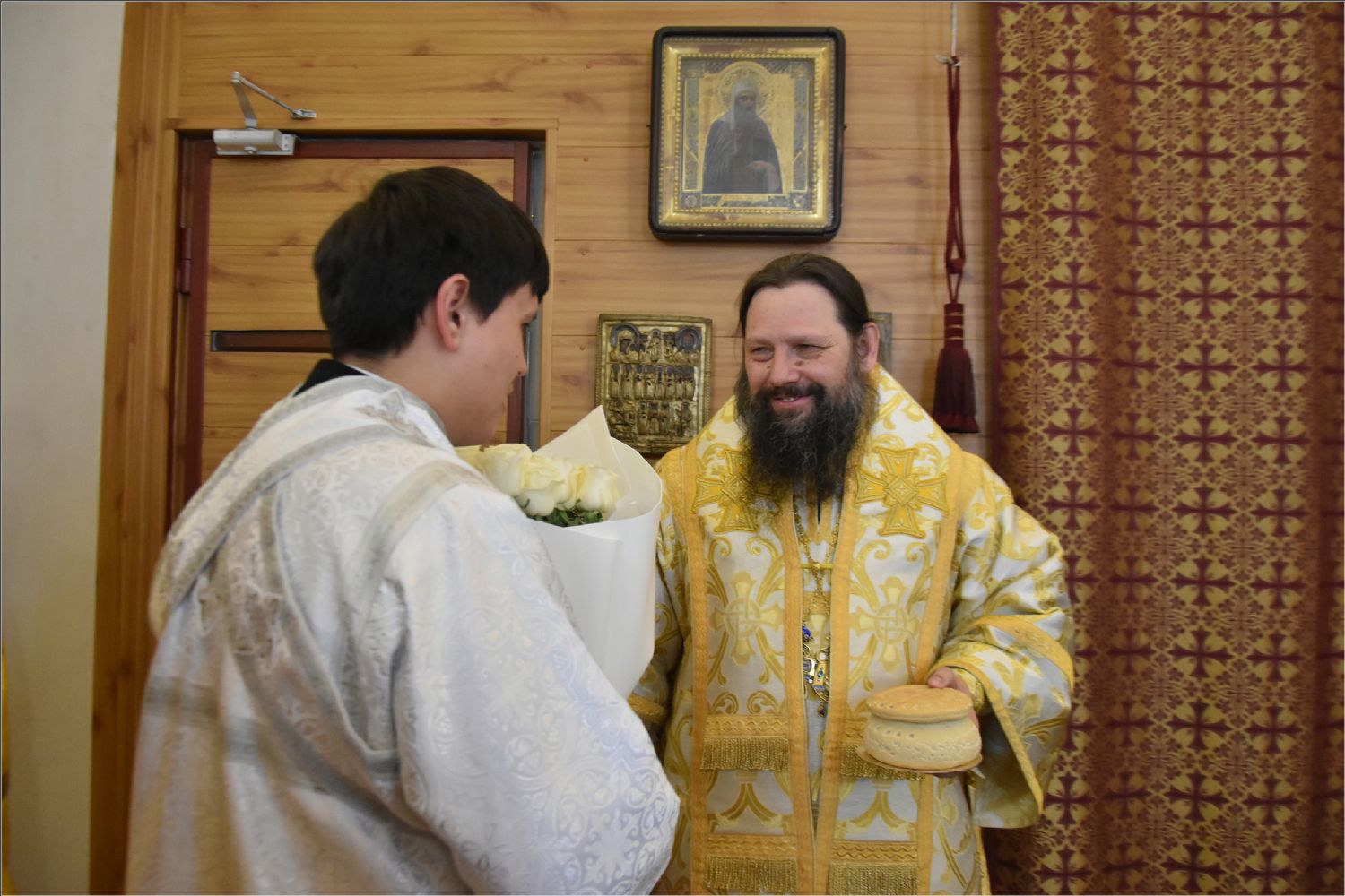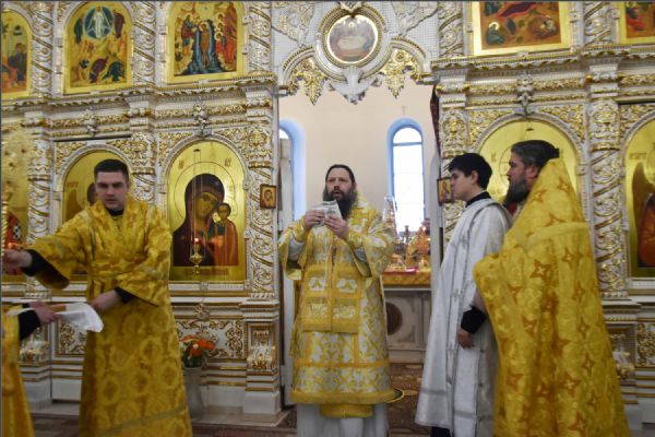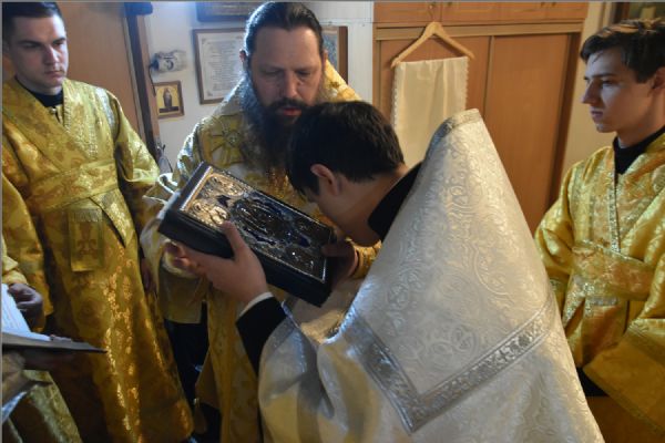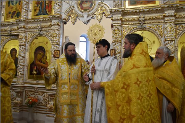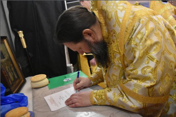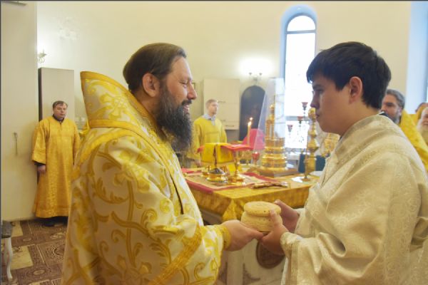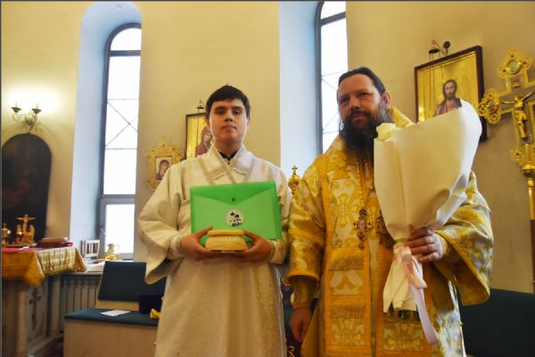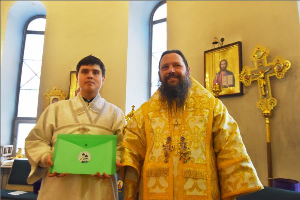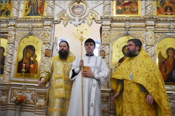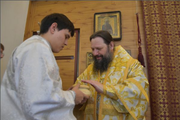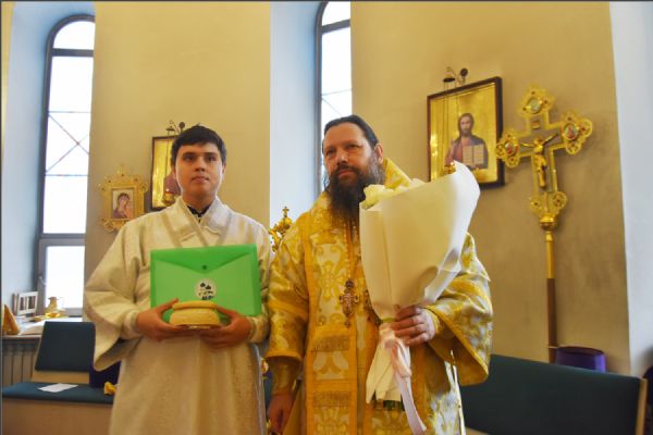 В своем слове архипастырь поздравил диакона Алекаандра с рукоположением, вручил ему богослужебную просфору: