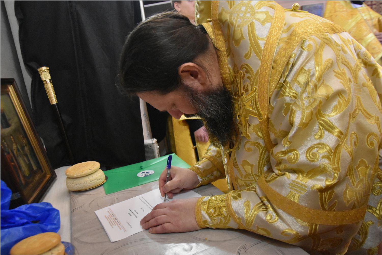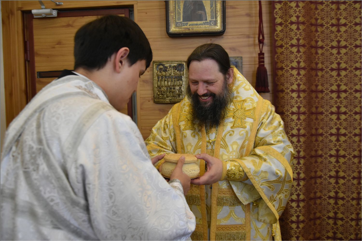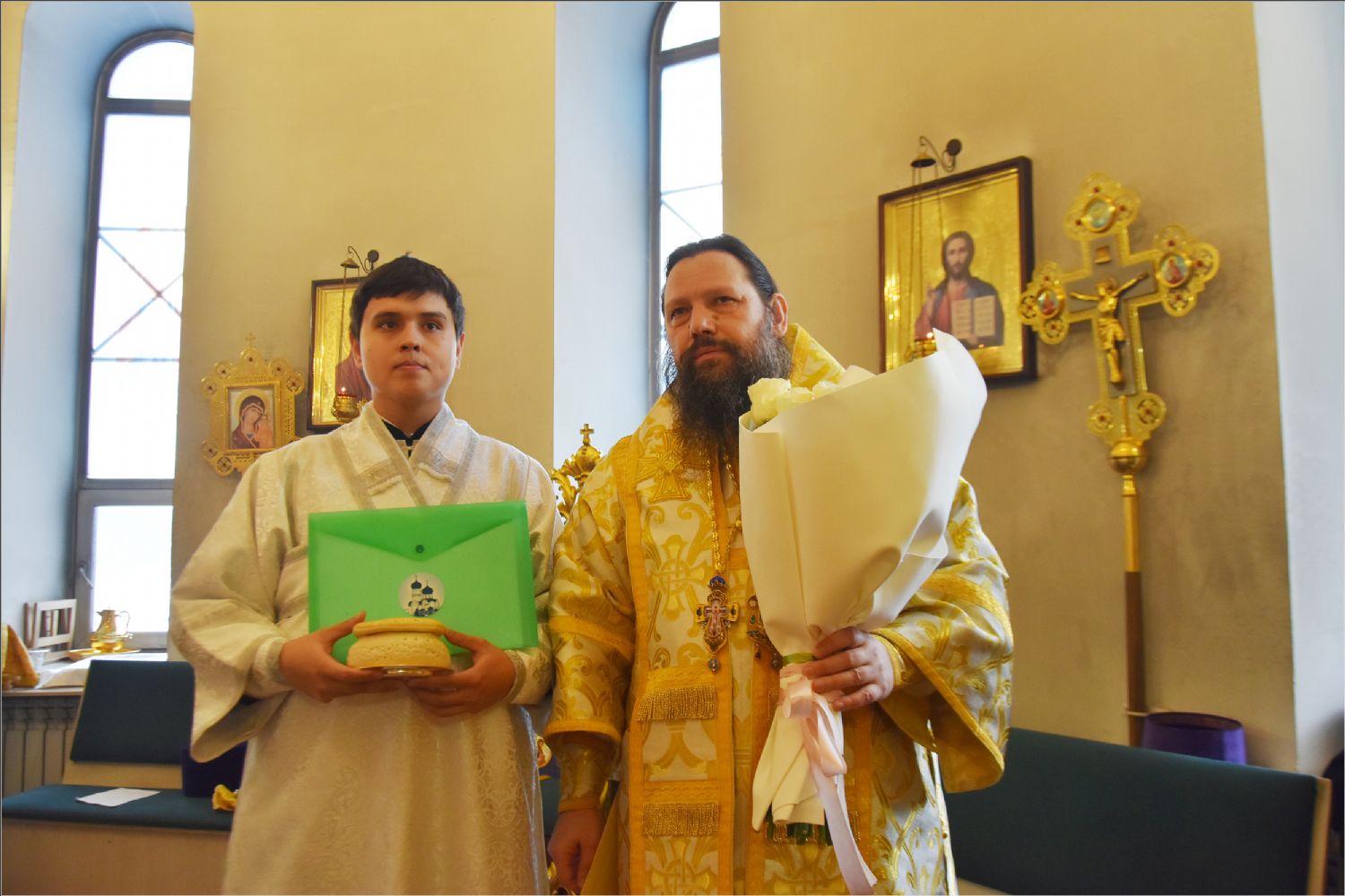В своем слове архипастырь поздравил диакона Алекаандра с рукоположением, вручил ему богослужебную просфору: