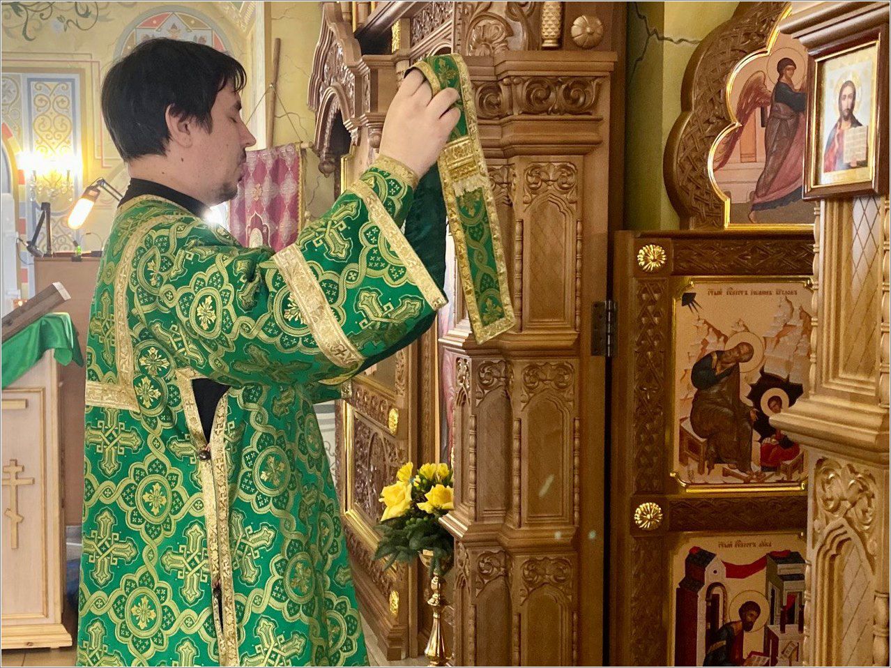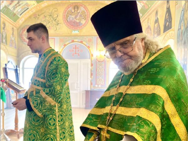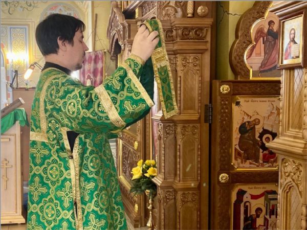 На мирной и сугубой ектениях были вознесены молитвенные прошения о Российском воинстве и молитва о мире. Проповедь по запричастном стихе произнес иерей Василий Федосеев.