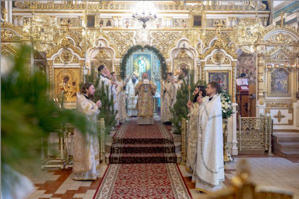 8 января 2026 года, в попразднство Рождества Христова, праздник Собора Пресвятой Богородицы, митрополит Казанский и Татарстанский Кирилл и епископ Набережночелнинский и Елабужский Гавриил совершили Божественную литургию в Никольском соборе города Казани, сообщает сайт Татарстанской митрополии.