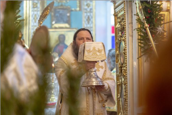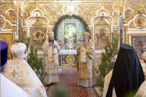 Митрополит Кирилл приветствовал епископа Гавриила и поздравил участников архиерейского богослужения с продолжающимся праздником Рождества.