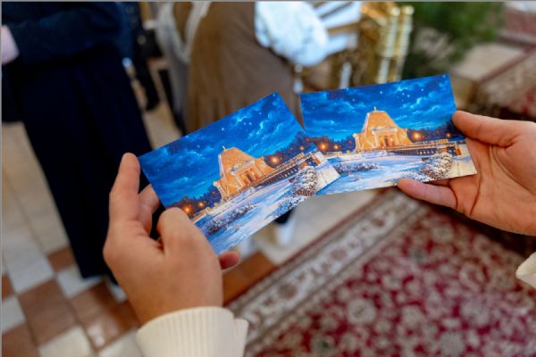 Участникам богослужения были вручены праздничные открытки. Архипастыри преподали верующим благословение.