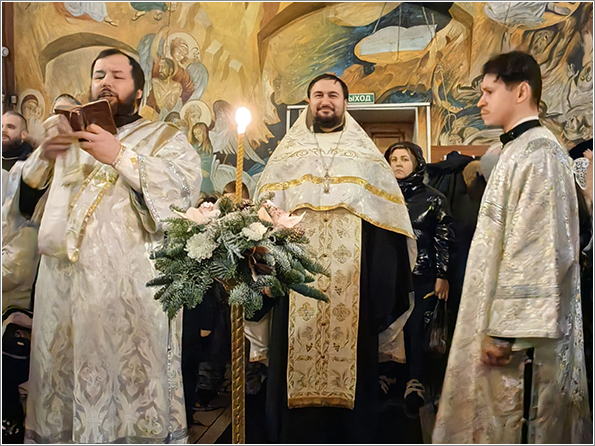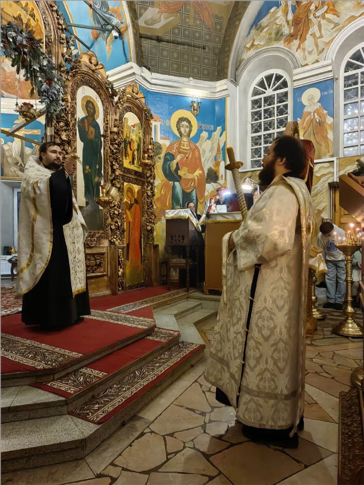 В канун великого праздника — Рождества Христова — в храме святых бессребреников Космы и Дамиана состоялось Всенощное бдение. Это особое богослужение погружает верующих в атмосферу радостного ожидания пришествия в мир Спасителя, сообщает группа храма.