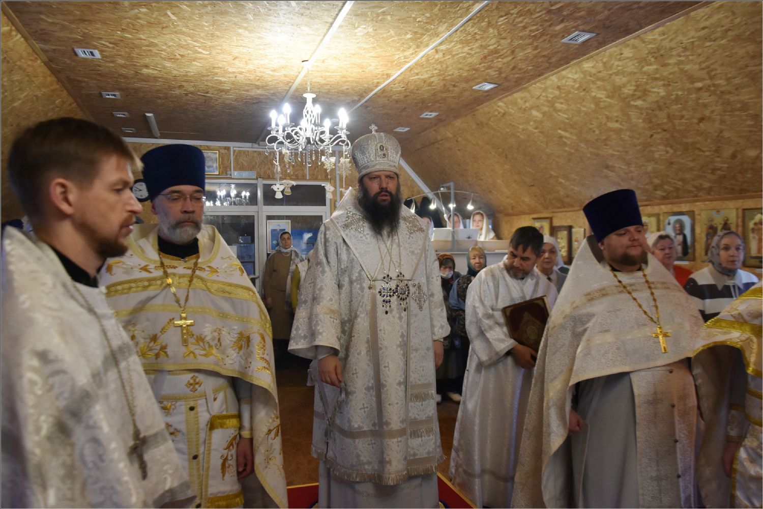 Его Преосвященству сослужили благочинный Закамского округа протоиерей Андрей Дубровин, настоятель храма святителя Николая Чудотворца города Набережные Челны иерей Александр Ворошилов и клирик прихода протоиерей Александр Андриевский, настоятель храма иконы Божией Матери «Неупиваемая Чаша» города Набережные Челны протоиерей Владимир Иванов, клирик Свято-Вознесенского кафедрального собора иерей Сергий Иноземцев. Диаконский чин возглавил протодиакон Дмитрий Половников. Песнопения исполнил приходской женский хор под управлением Натальи Пиминовой.