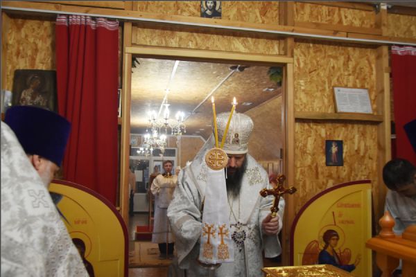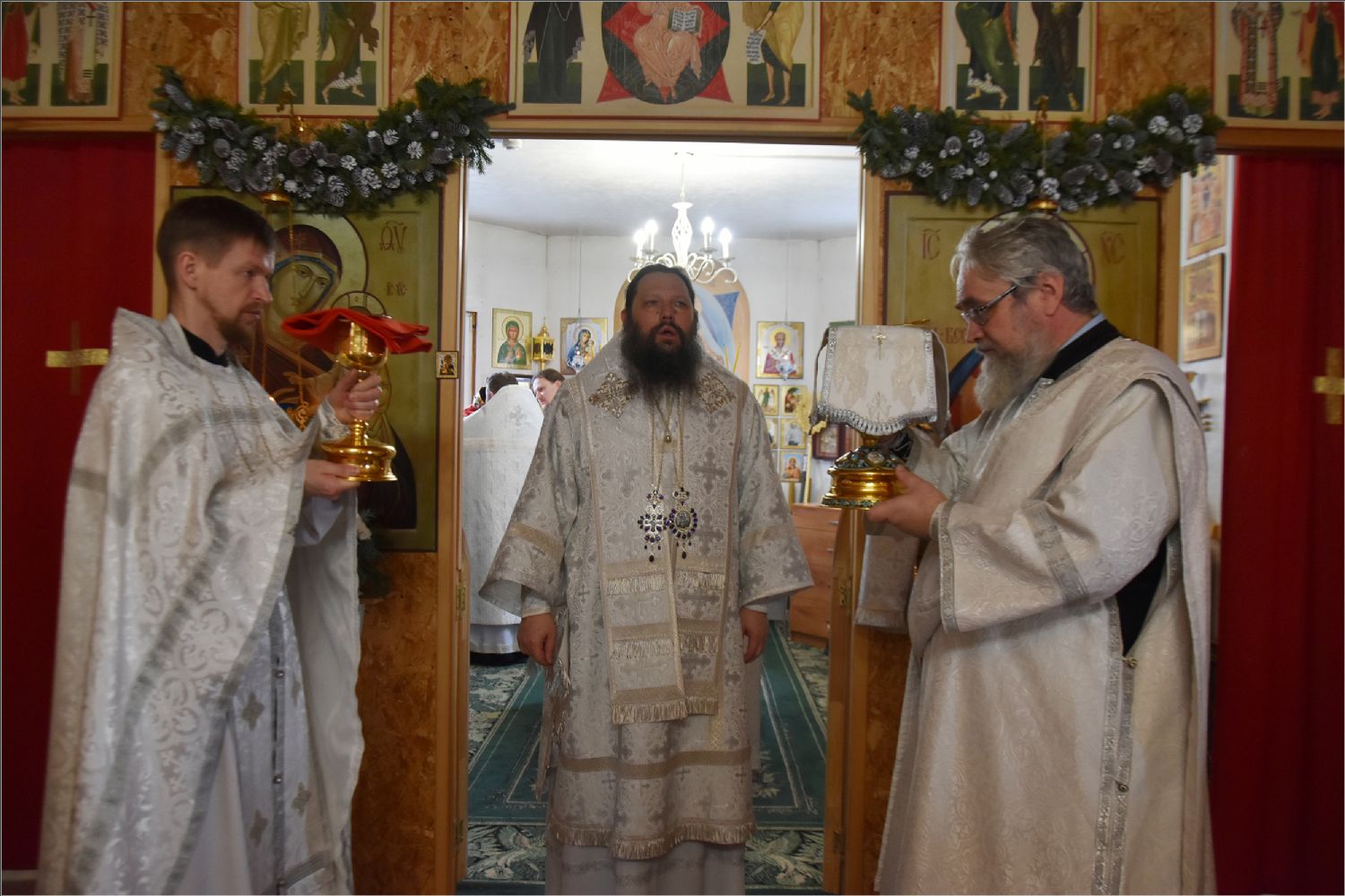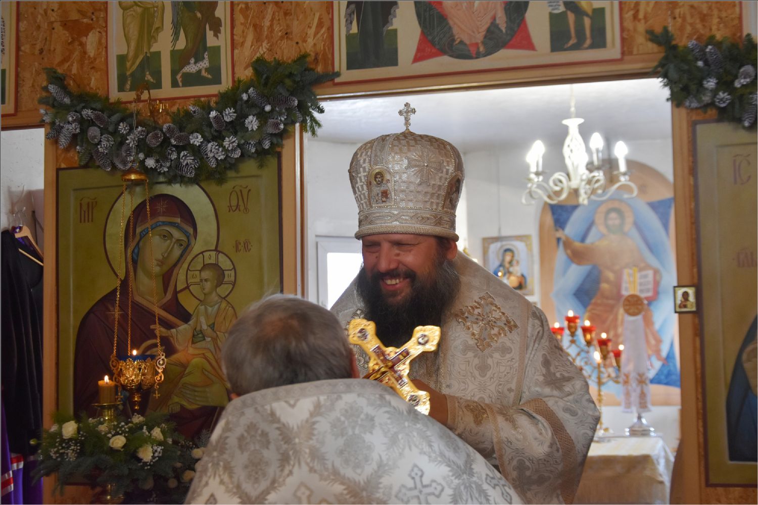 «Спаси Господи, Преосвященнейший Владыко! Вы посетили наш храм, отслужив в нем первую Литургию после Христова Рождества, и мы благодарны, что Вы выбрали именно наш приход. Мы, духовенство, видя, какие события произошли в епархии за полтора года Вашего руководства, не можем не поблагодарить Бога за эти свершения и за свет Христов, который несут Ваши богослужения. Их красота, сердечная теплота, многогранность привлекают прихожан в храмы. В день попразднства Рождества Господа и Спаса нашего Иисуса Христа мы желаем вам крепости духа. Молитесь за нас, грешных, чтобы храм наш строился, чтобы приход увеличивался, имя Божье славилось».