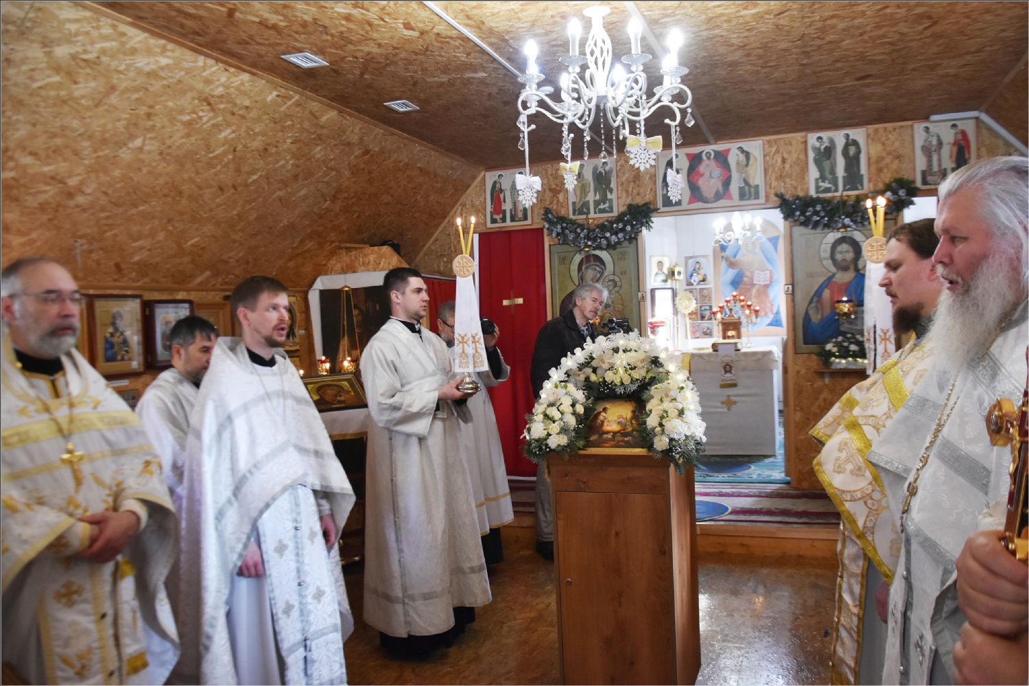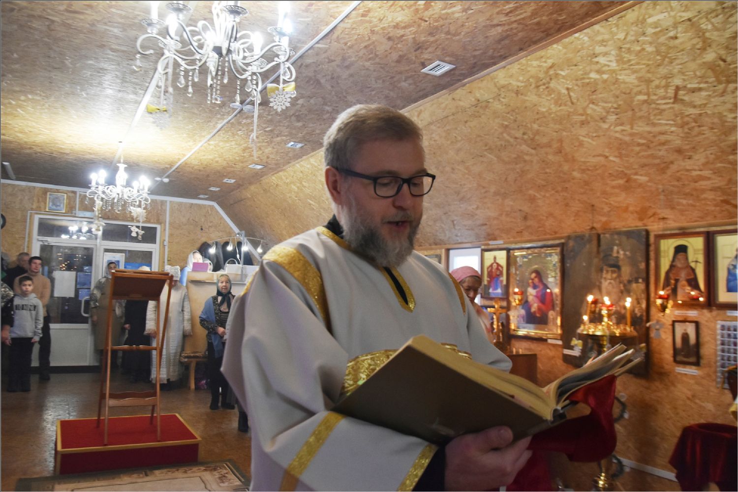 На мирной и сугубой ектениях были вознесены молитвы о Российском воинстве и о мире. Также за богослужением помолились об упокоении души профессора Казанской духовной академии и миссионера Николая Ильминского — сегодня исполнилось 135 лет со дня преставления «апостола Поволжья». По запричастном стихе проповедь произнёс протоиерей Александр Андриевский. В завершение было совершено славление празднику Рождества Христова.