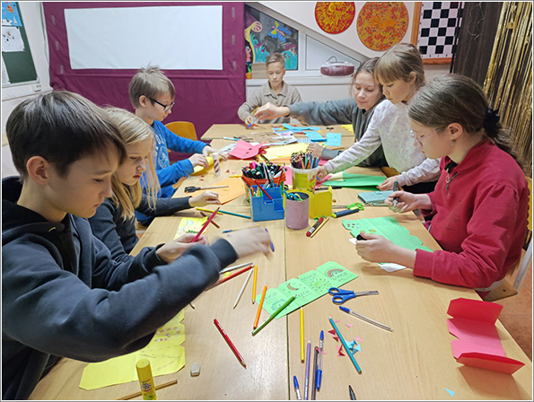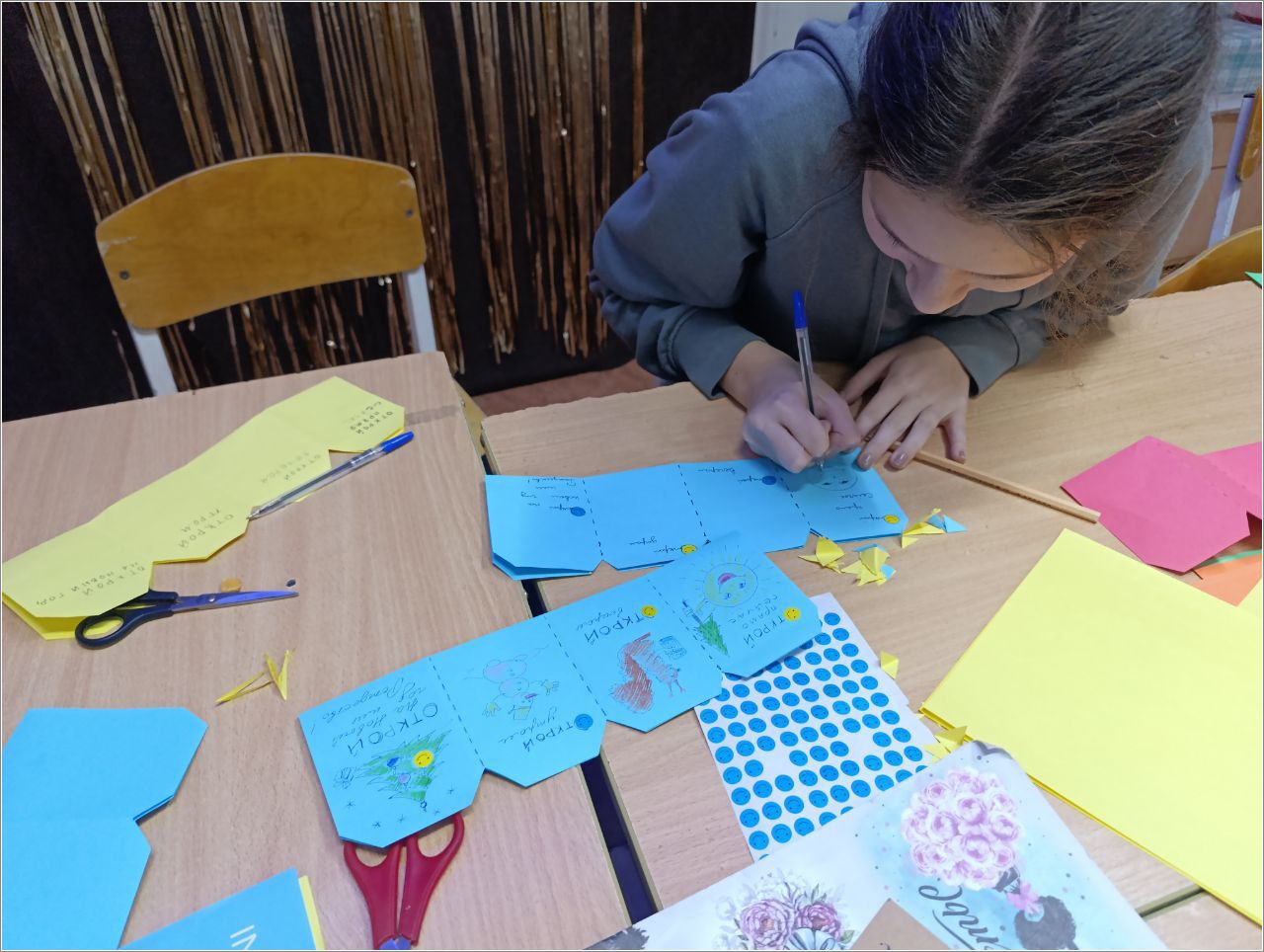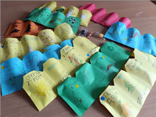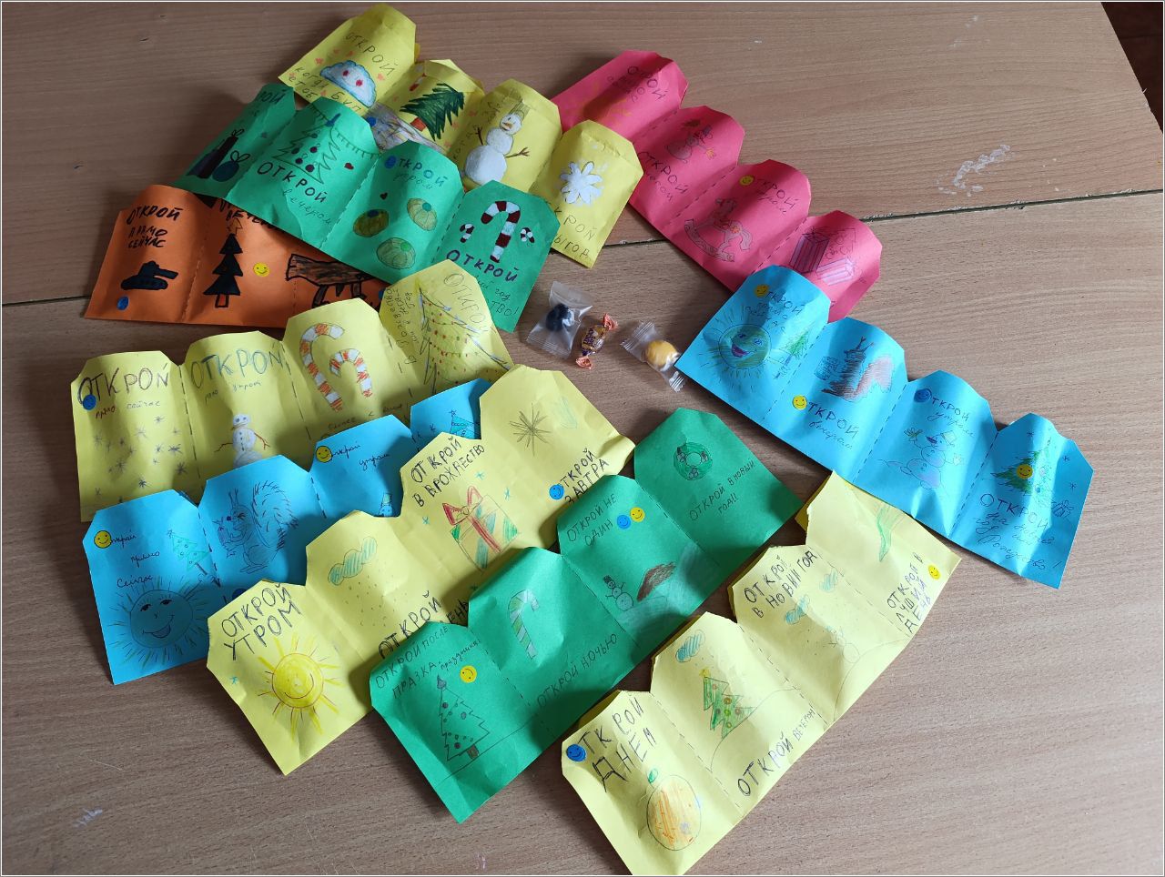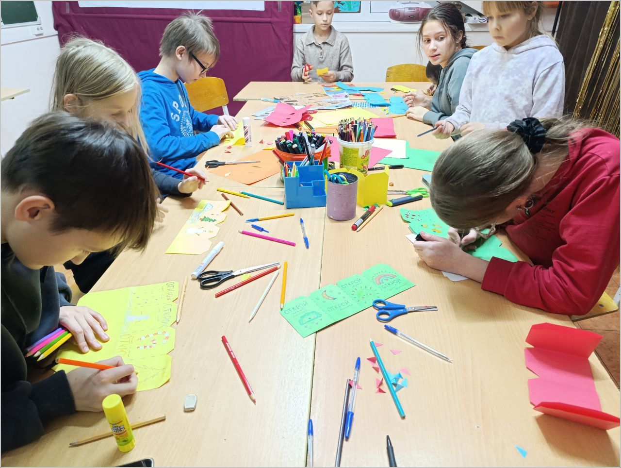 Воспитанники Клуба юных спасателей «Спас» при Свято-Вознесенском кафедральном соборе также внесли свою лепту в общее благое дело — они изготовили оригинальные открытки с сюрпризом-конфеткой внутри, чтобы порадовать наших бойцов в праздничные дни.