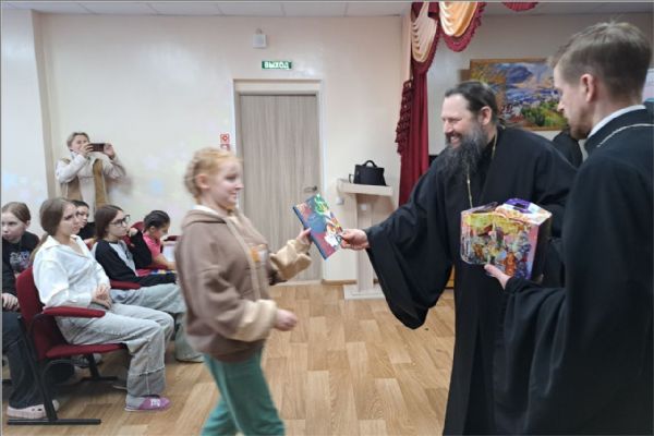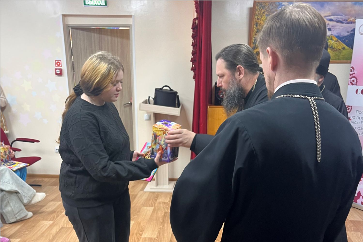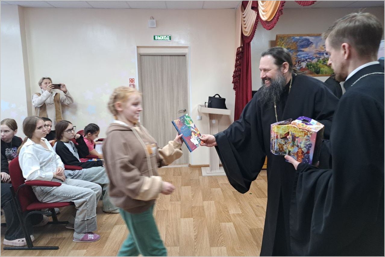 Ребята, проходящие реабилитацию в приюте, получили книги и сладкие подарки. Владыка рассказал, что такое Рождество Христово, и чудесные истории для детей.