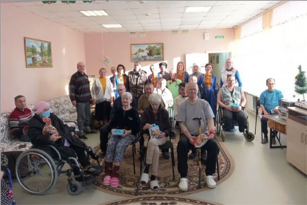 Социальный отдел епархии поздравил 70 проживающих в Доме-интернате для престарелых и инвалидов в городе Набережные Челны. Каждому подарили сладкий подарок, к трапезе привезли пироги, а ансамбль «Прокимен», действующий при Духовно-просветительском центре храма преподобного Серафима Саровского показал небольшой Рождественский концерт. Артисты исполнили Рождественские песни и колядки для славления Рождества Христова.