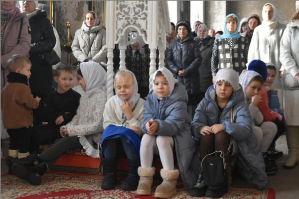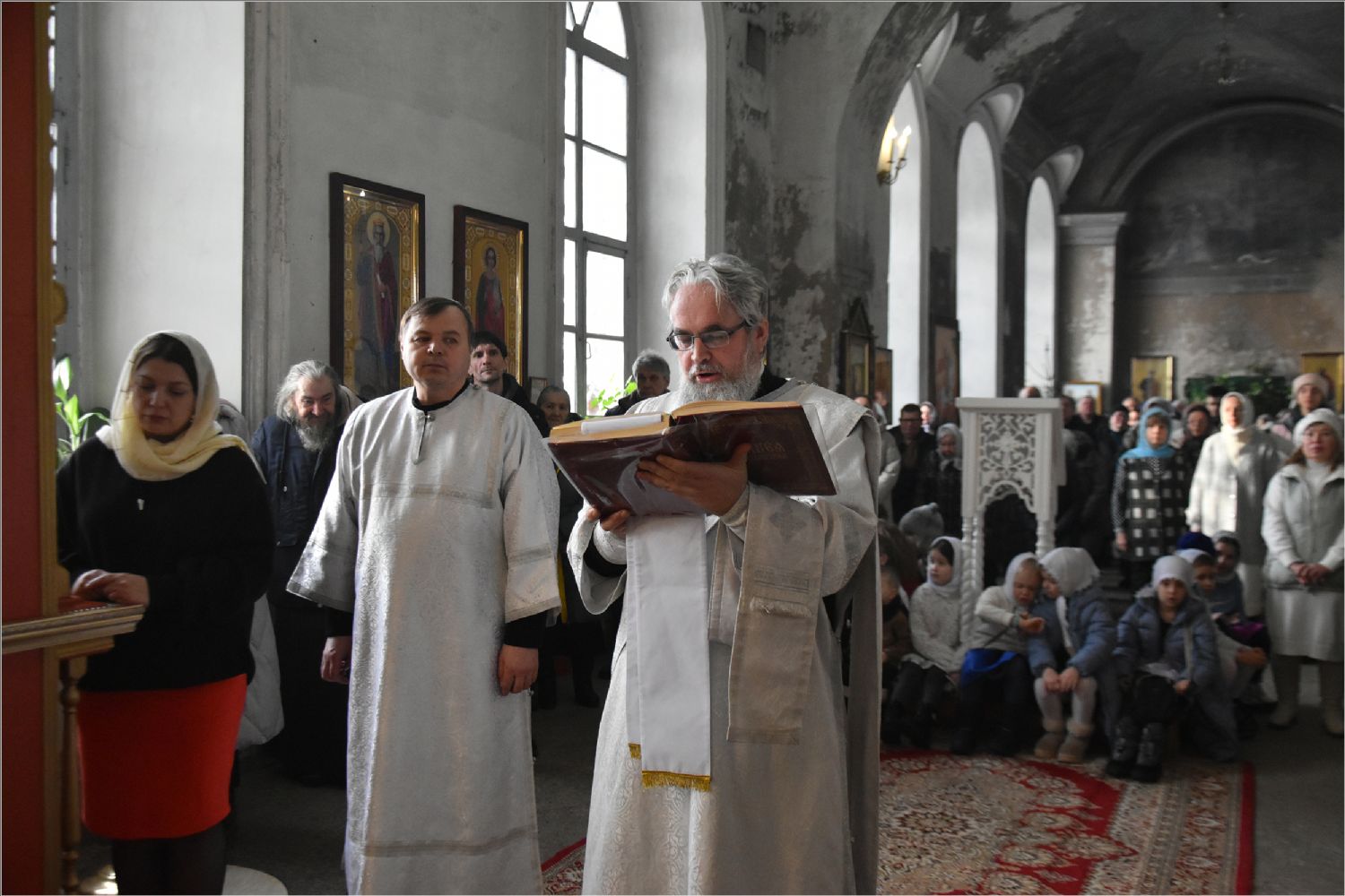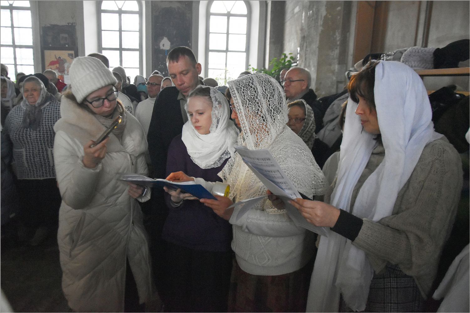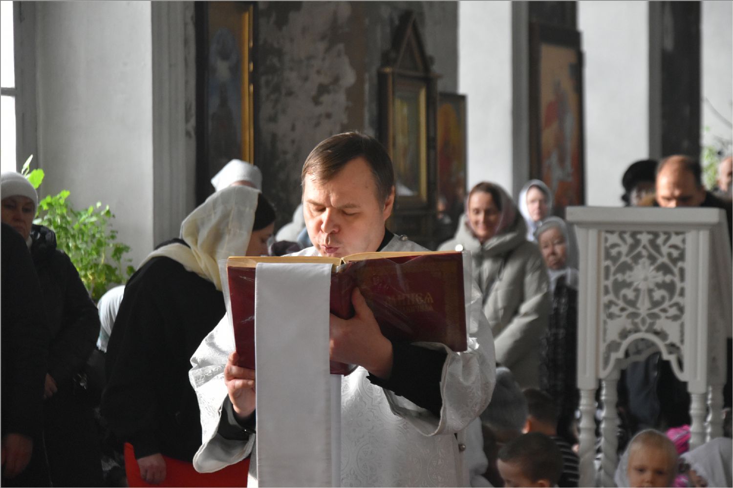 Песнопения исполнил приходской смешанный хор под управлением Натальи Кучерявенко. На мирной и сугубой ектениях были вознесены молитвы о Российском воинстве и о мире. По запричастном стихе проповедь произнес иерей Михаил Климов.