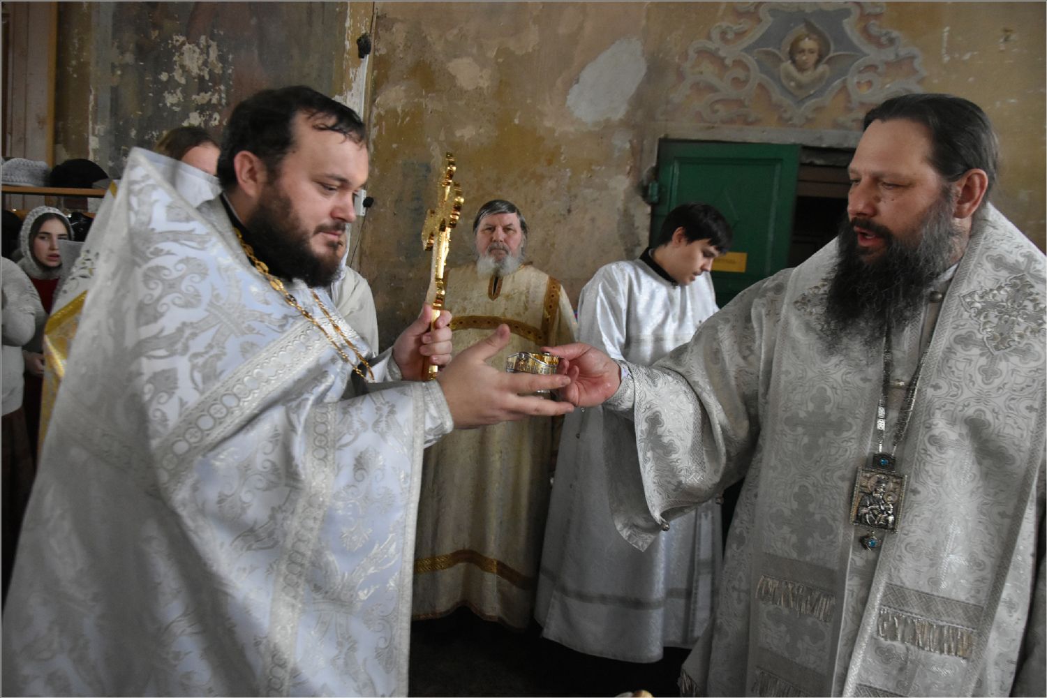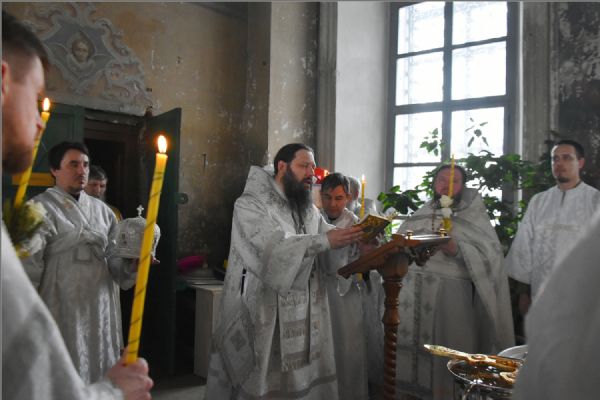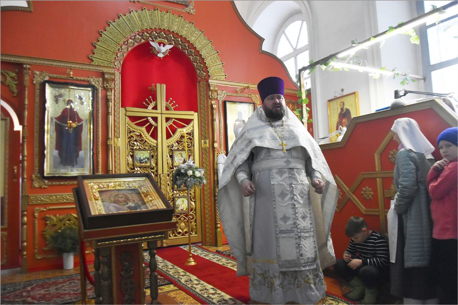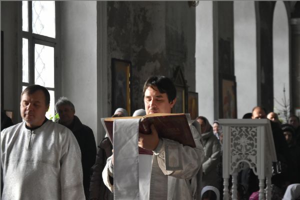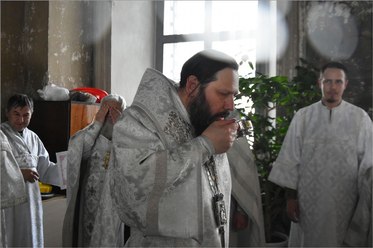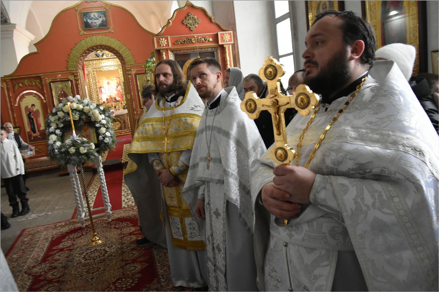Песнопения исполнил приходской смешанный хор под управлением Натальи Кучерявенко. На мирной и сугубой ектениях были вознесены молитвы о Российском воинстве и о мире. По запричастном стихе проповедь произнес иерей Михаил Климов.