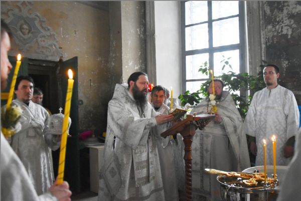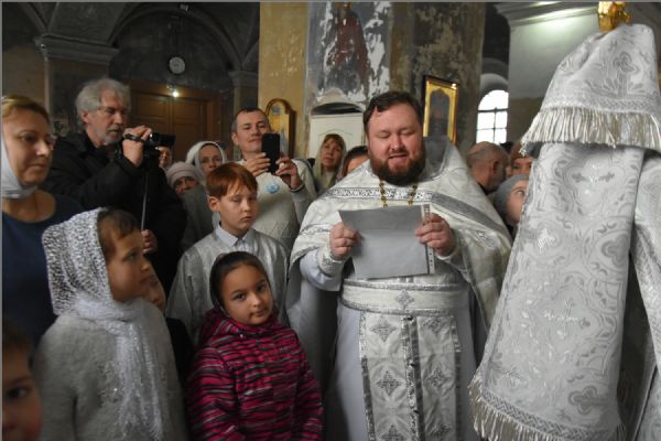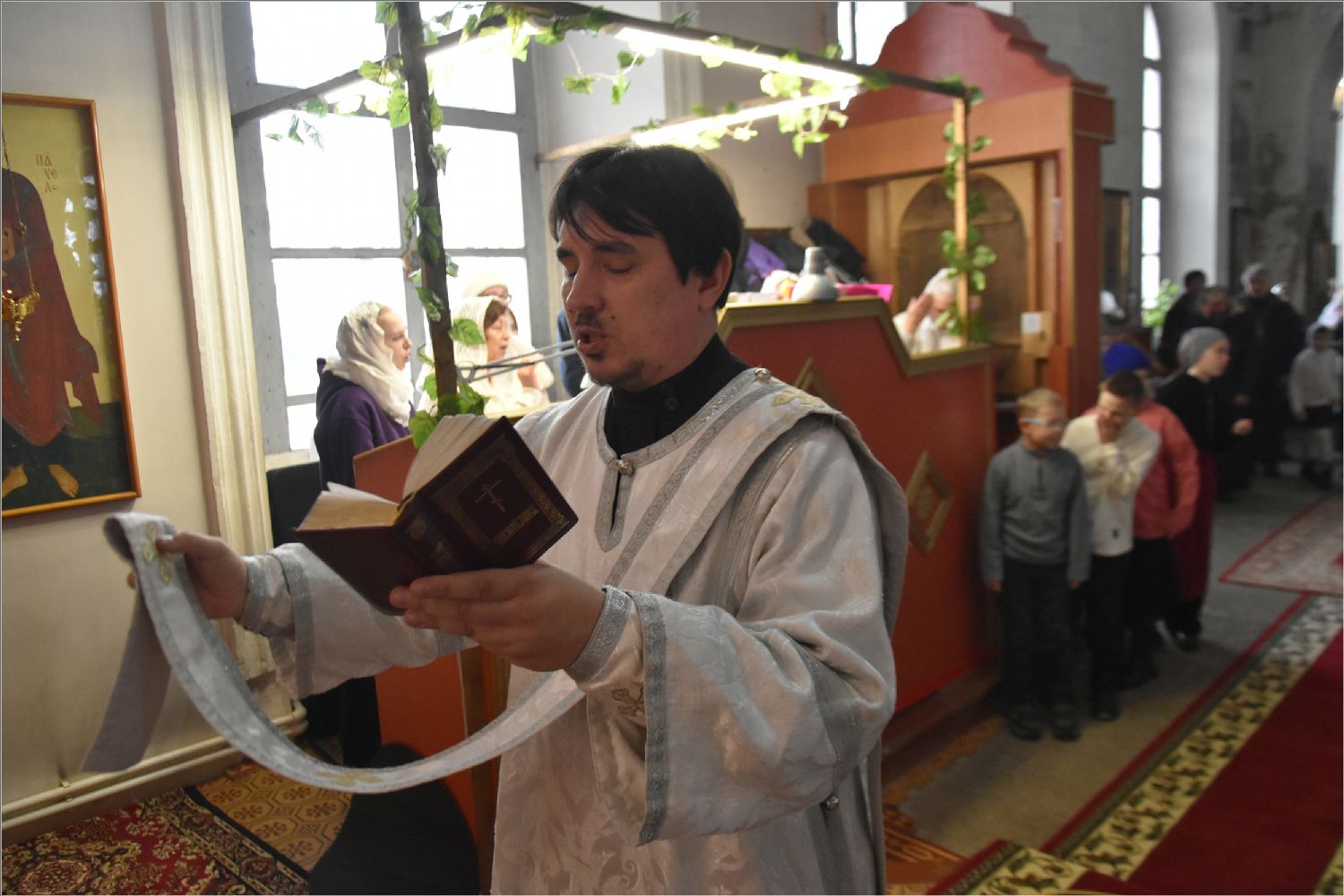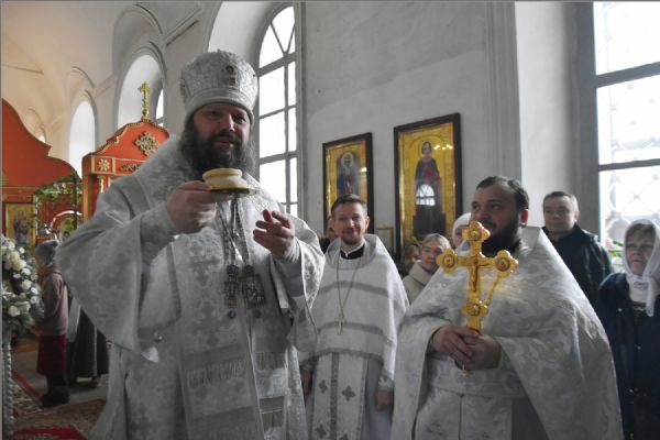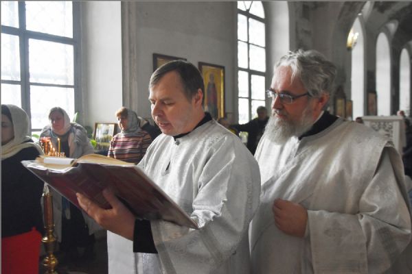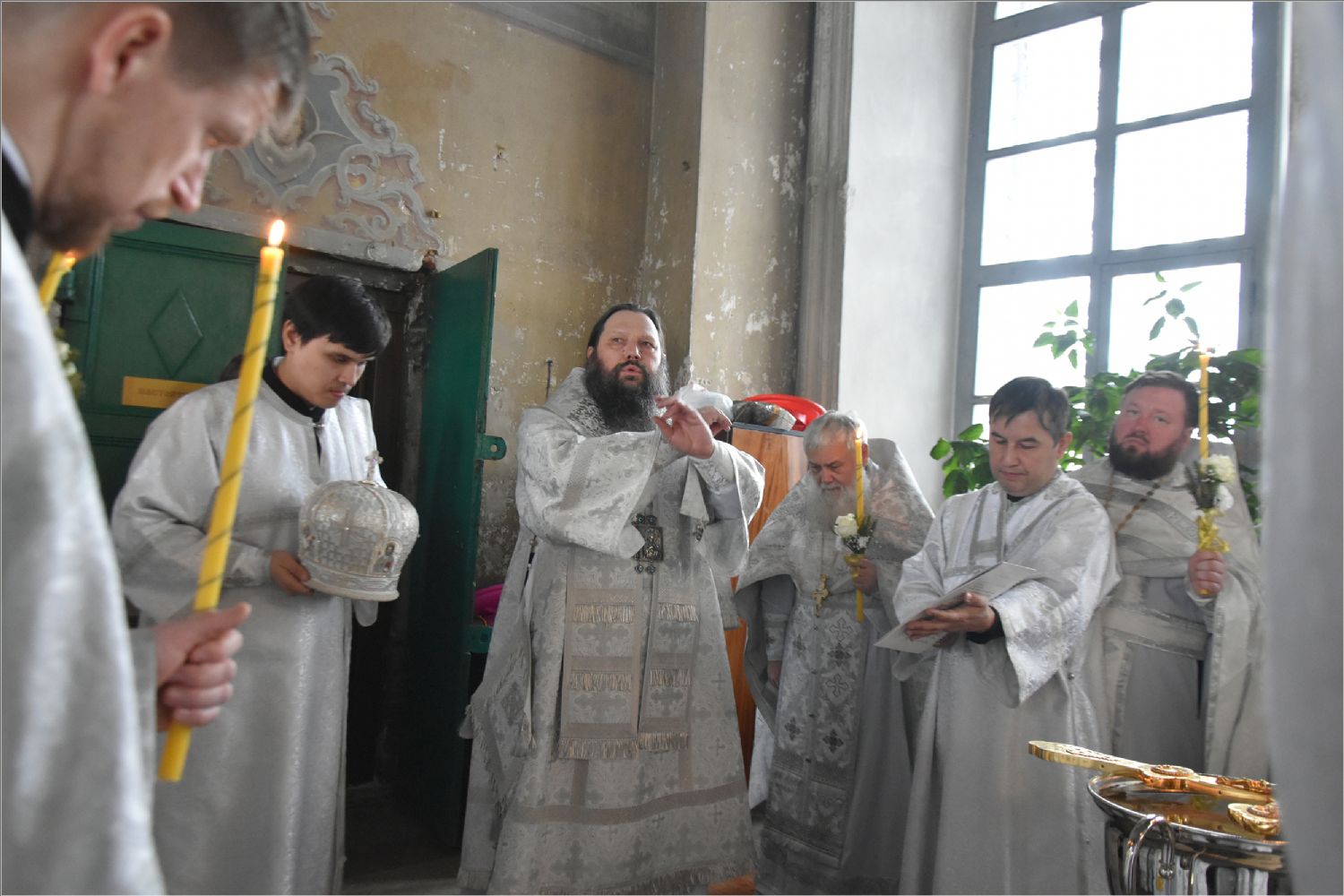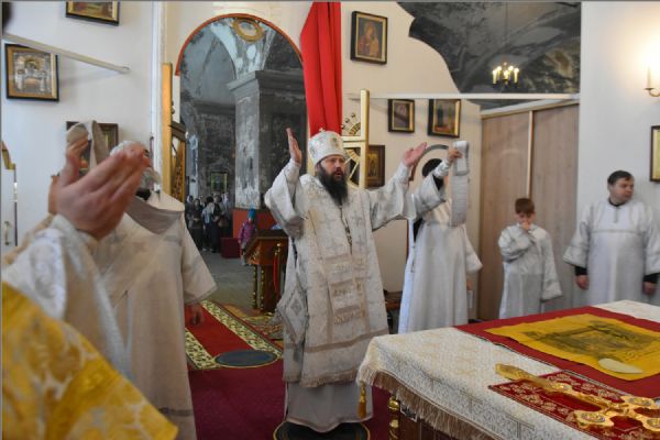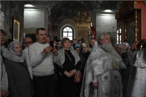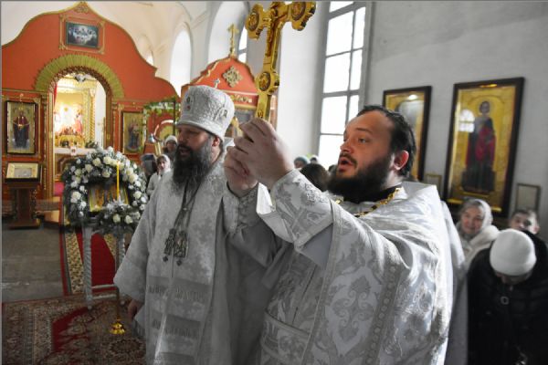 Песнопения исполнил приходской смешанный хор под управлением Натальи Кучерявенко. На мирной и сугубой ектениях были вознесены молитвы о Российском воинстве и о мире. По запричастном стихе проповедь произнес иерей Михаил Климов.