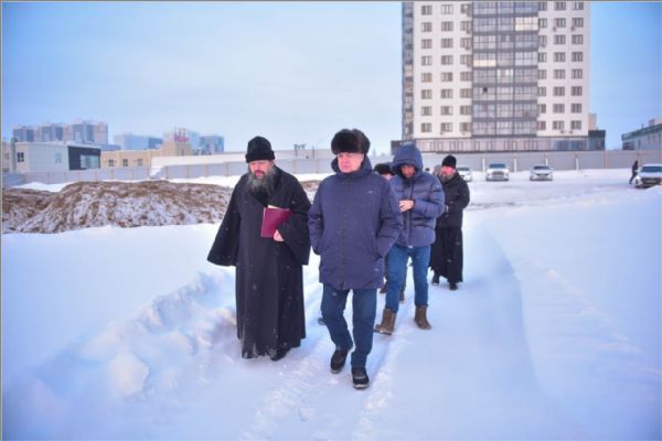 «На этом месте построят временный храм, где будут проходить богослужения, место будет освящаться. В будущем здесь планируется создание Воскресенского кафедрального собора, в него мы вкладываем все силы. Нас поддерживают республиканские власти, город и лично Наиль Гамбарович. Вполне возможно, что уже к Пасхе временный храм будет воздвигнут», — сообщил епископ Набережночелнинский и Елабужский Гавриил. Владыка ознакомил Наиля Магдеева с проектом временного храма.