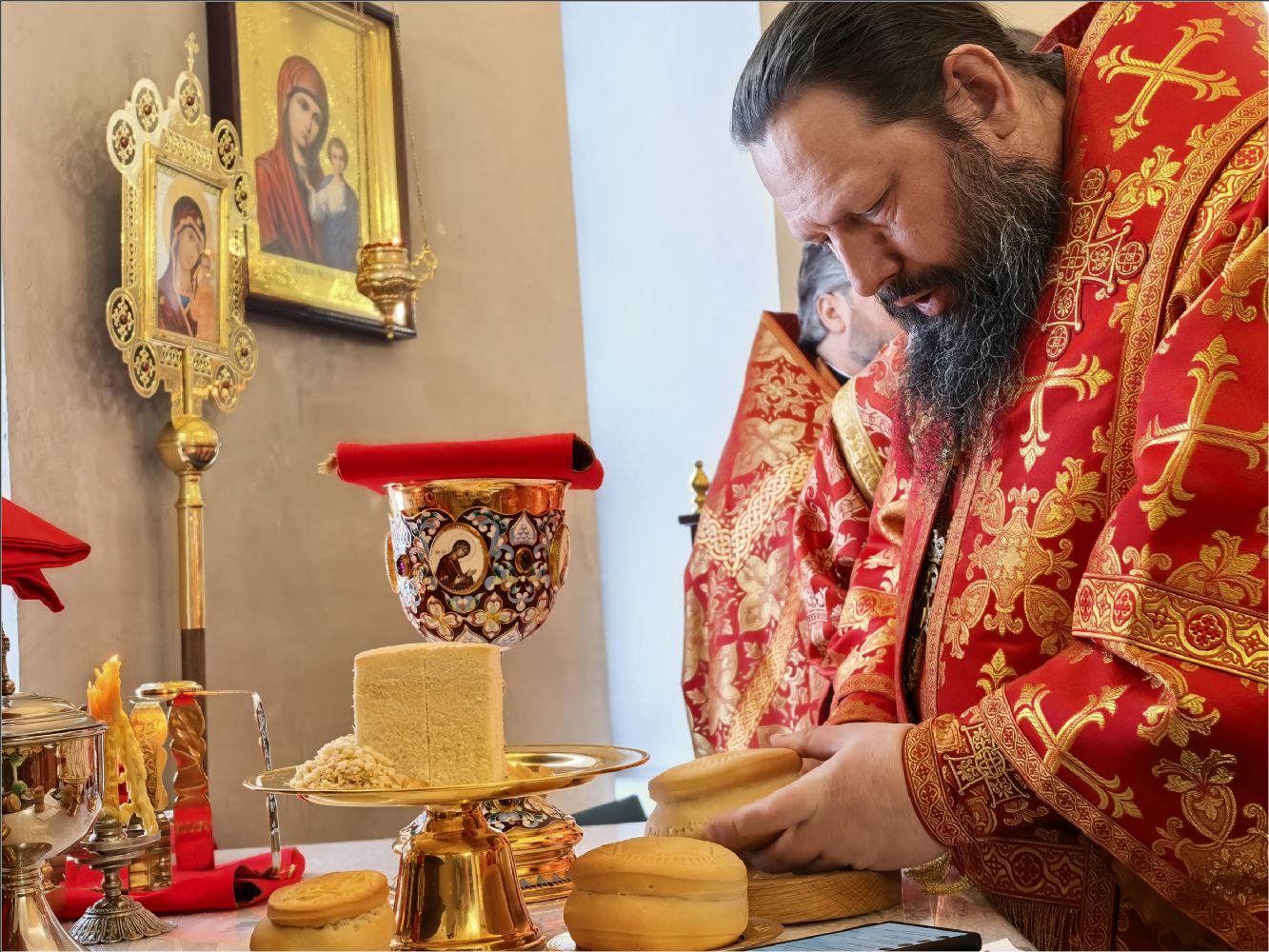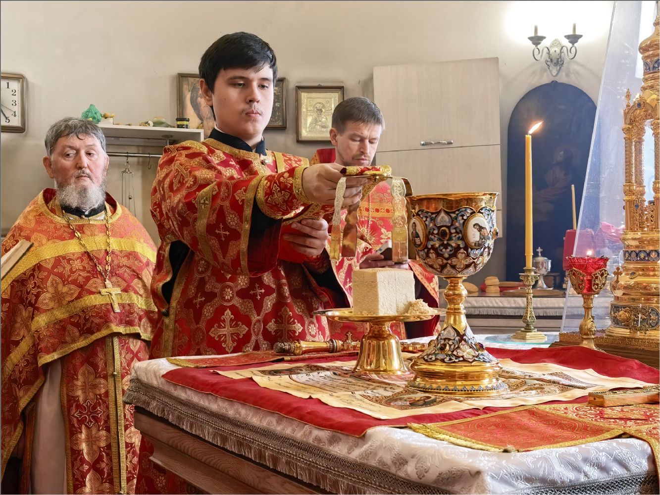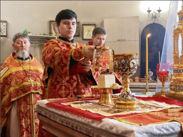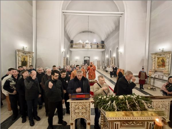 На мирной и сугубой ектениях были вознесены молитвы о Российском воинстве и о мире. По запричастном стихе проповедь произнёс иерей Иоанн Можаев.