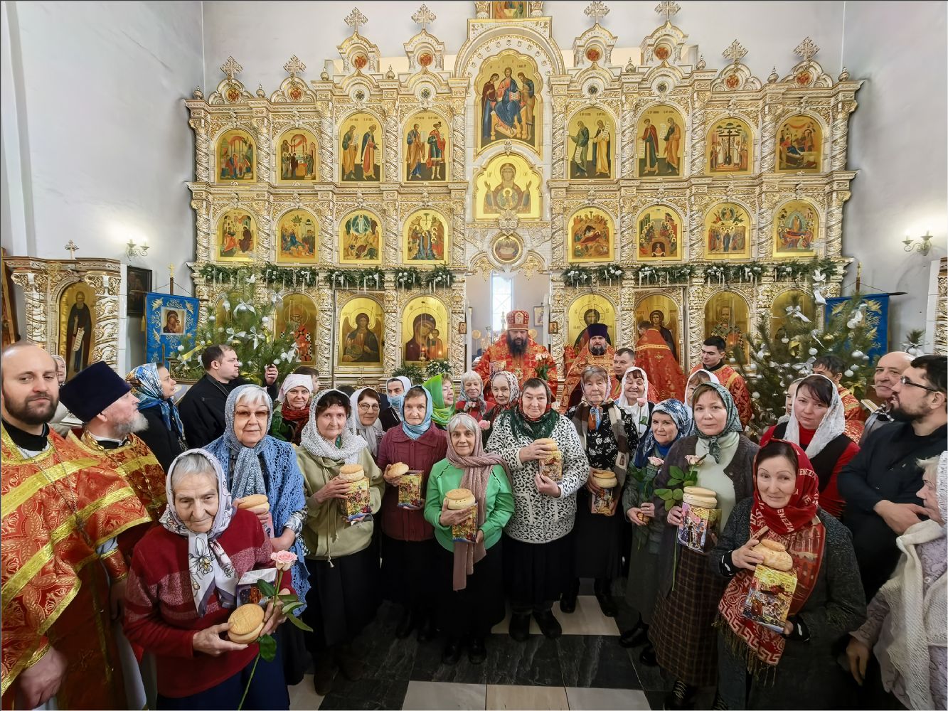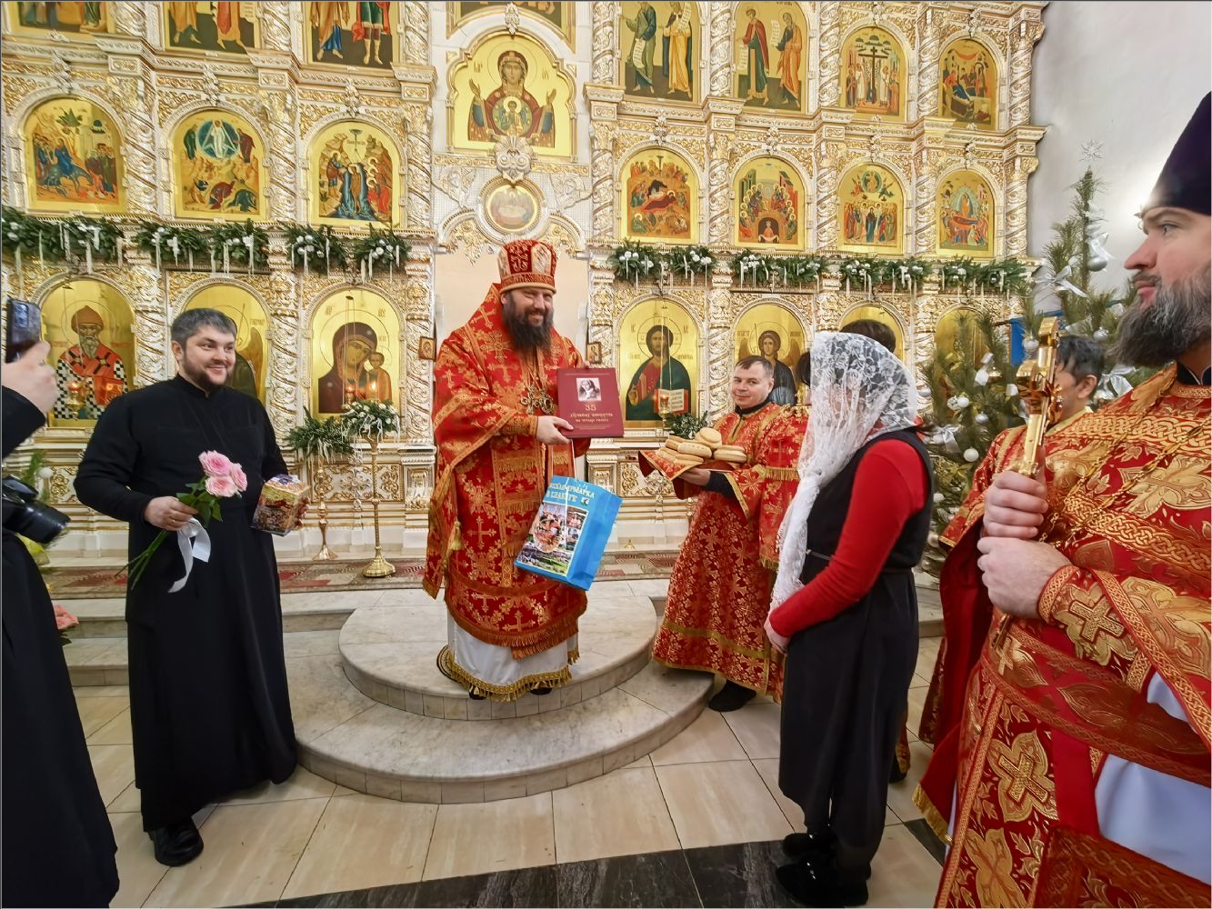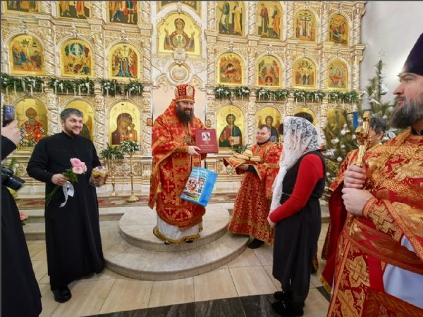 Владыка поздравил всех работников и прихожан храма, носящих имена Татиана и Нина (память которой будет праздноваться 27 января). Владыка подарил богослужебные просфоры, цветы и сладкие подарки. Была сделана памятная фотография.
