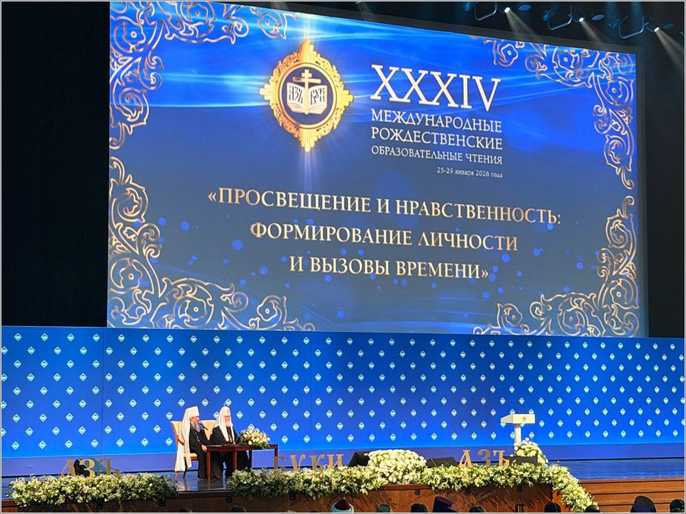 27 января в Москве в Государственном Кремлевском дворце под председательством Святейшего Патриарха Московского и всея Руси Кирилла состоялось торжественное пленарное заседание XXXIV Международных Рождественских образовательных чтений «Просвещение и нравственность: формирование личности и вызовы поколений».