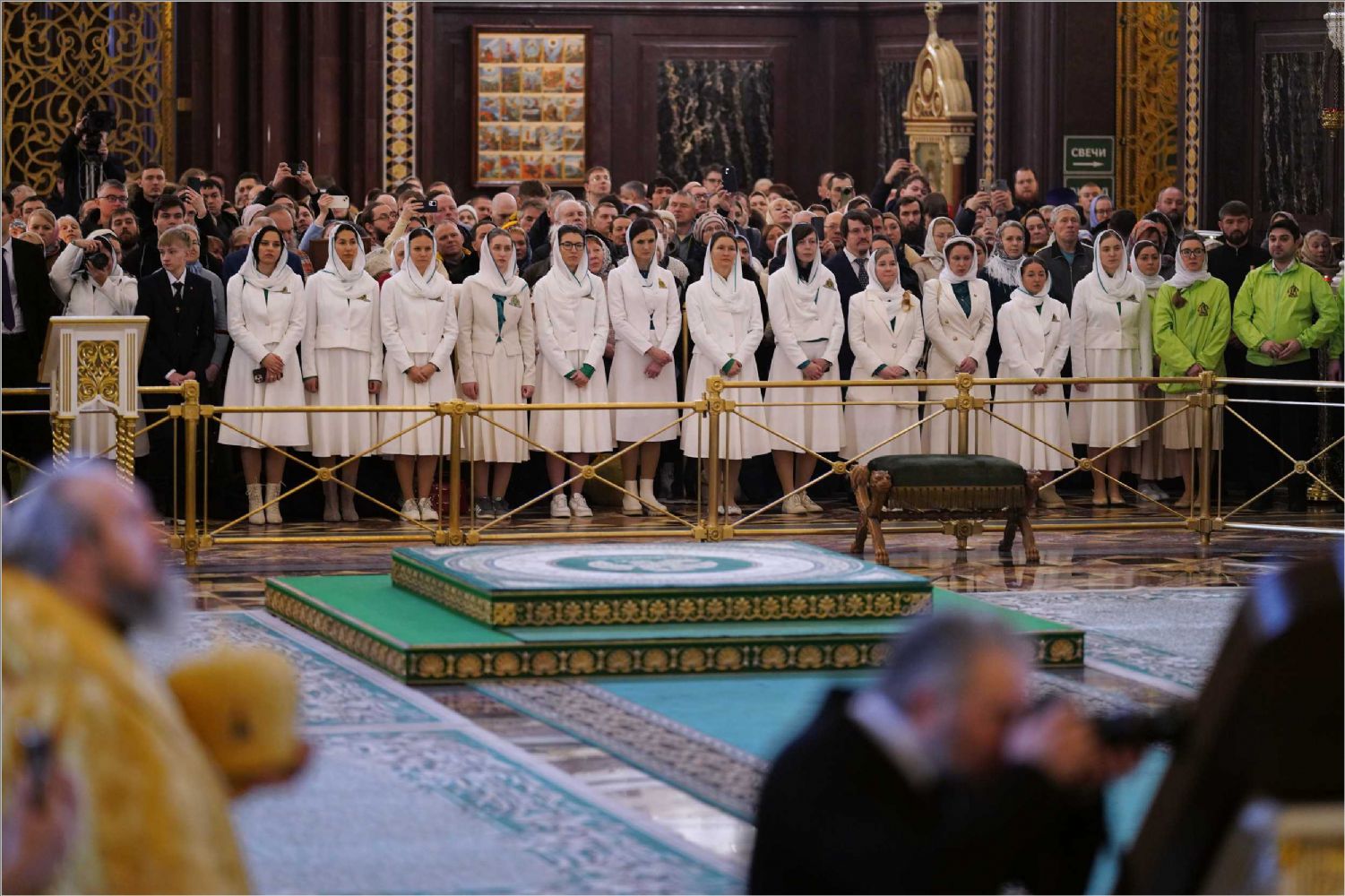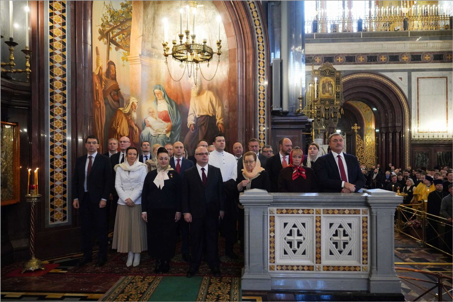 На богослужении присутствовала делегация Коптской Церкви во главе с епископом Даниилом — постоянным членом Священного Синода Коптской Церкви, председателем Патриаршей комиссии по монастырям и монашеству, настоятелем монастыря преподобного Павла Фивейского в Восточной пустыне близ Красного моря. Торжественное богослужение посетили представители федеральной власти.
