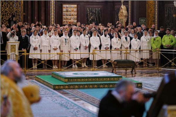Богослужебные песнопения исполнили хор Храма Христа Спасителя (регент — И.Б. Толкачев), хор духовенства Московской митрополии под управлением священника Сергия Голева и мужской хор «Всехсвятский» (г. Минск) под управлением Дмитрия Токмакова.