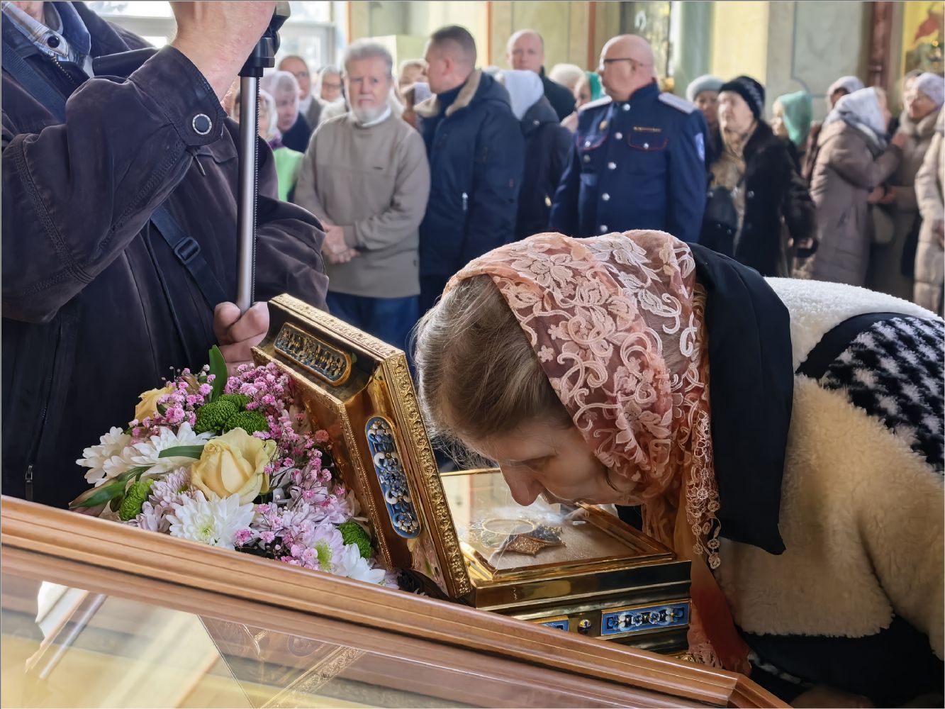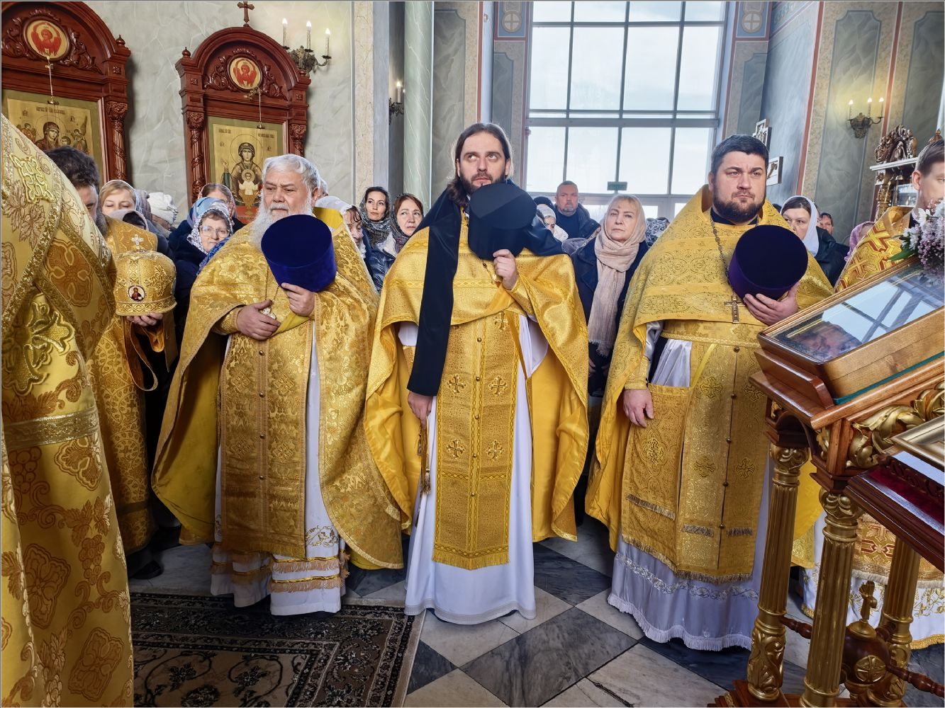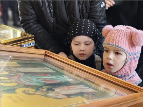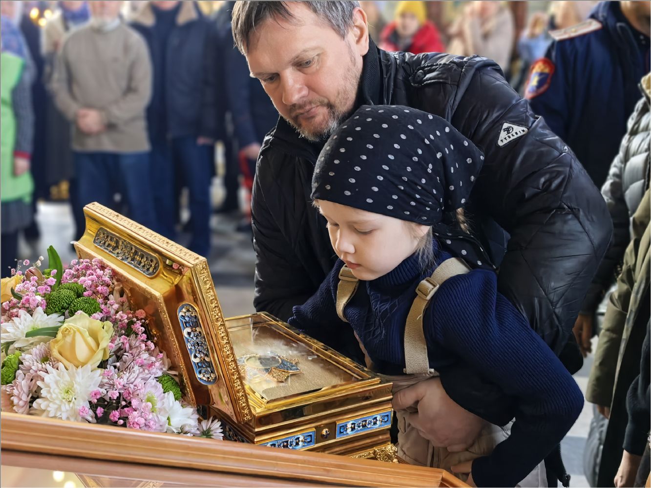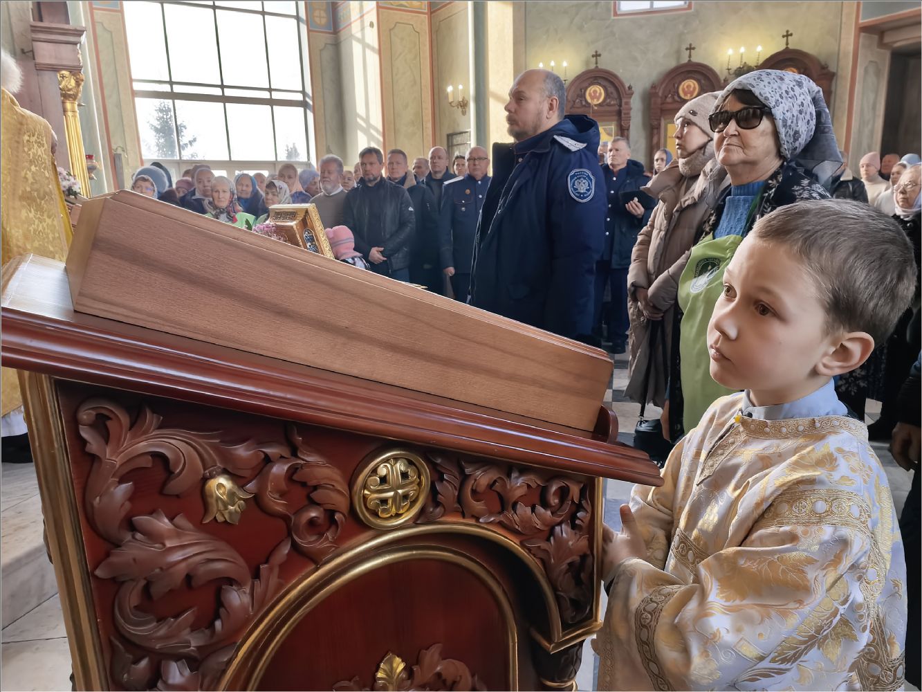 Перед началом Литургии в храм для молитвенного поклонения верующих был принесён ковчег с частицей мощей святителя Филарета, митрополита Московского, доставленный в Набережные Челны в рамках книжной выставки‑форума «Радость Слова».