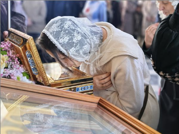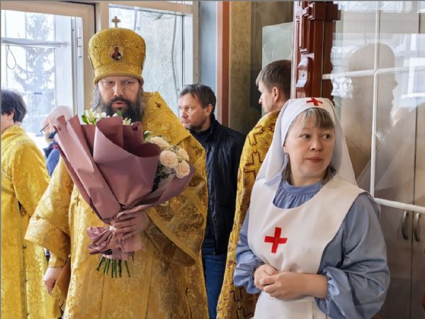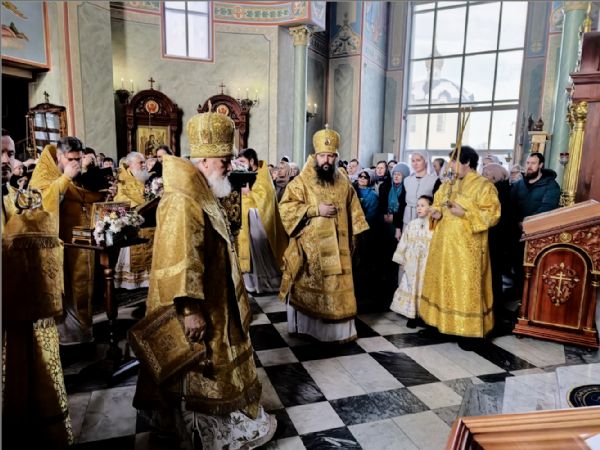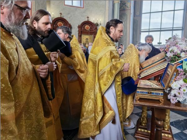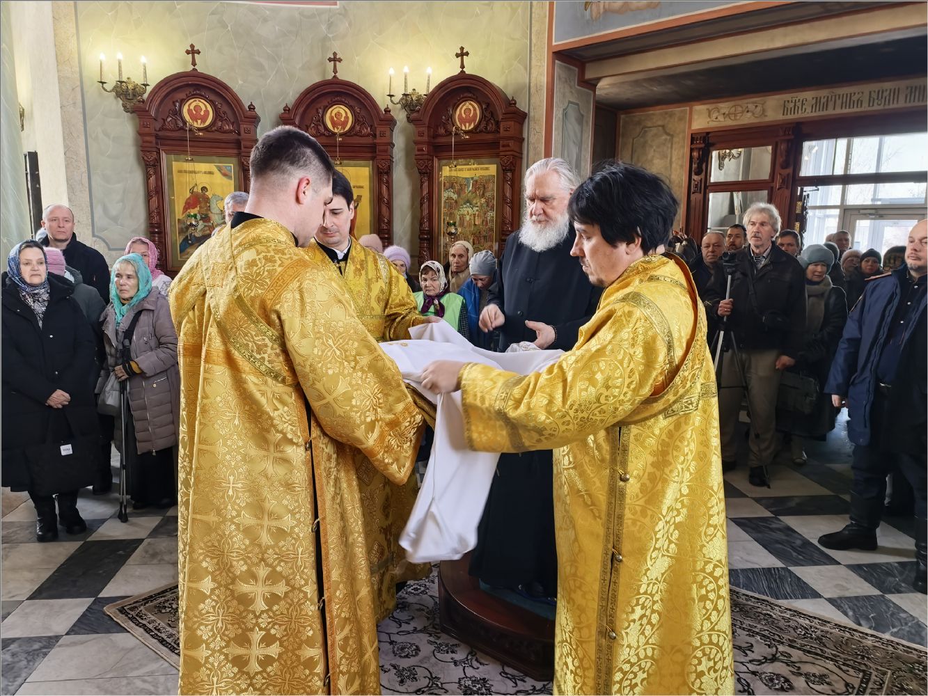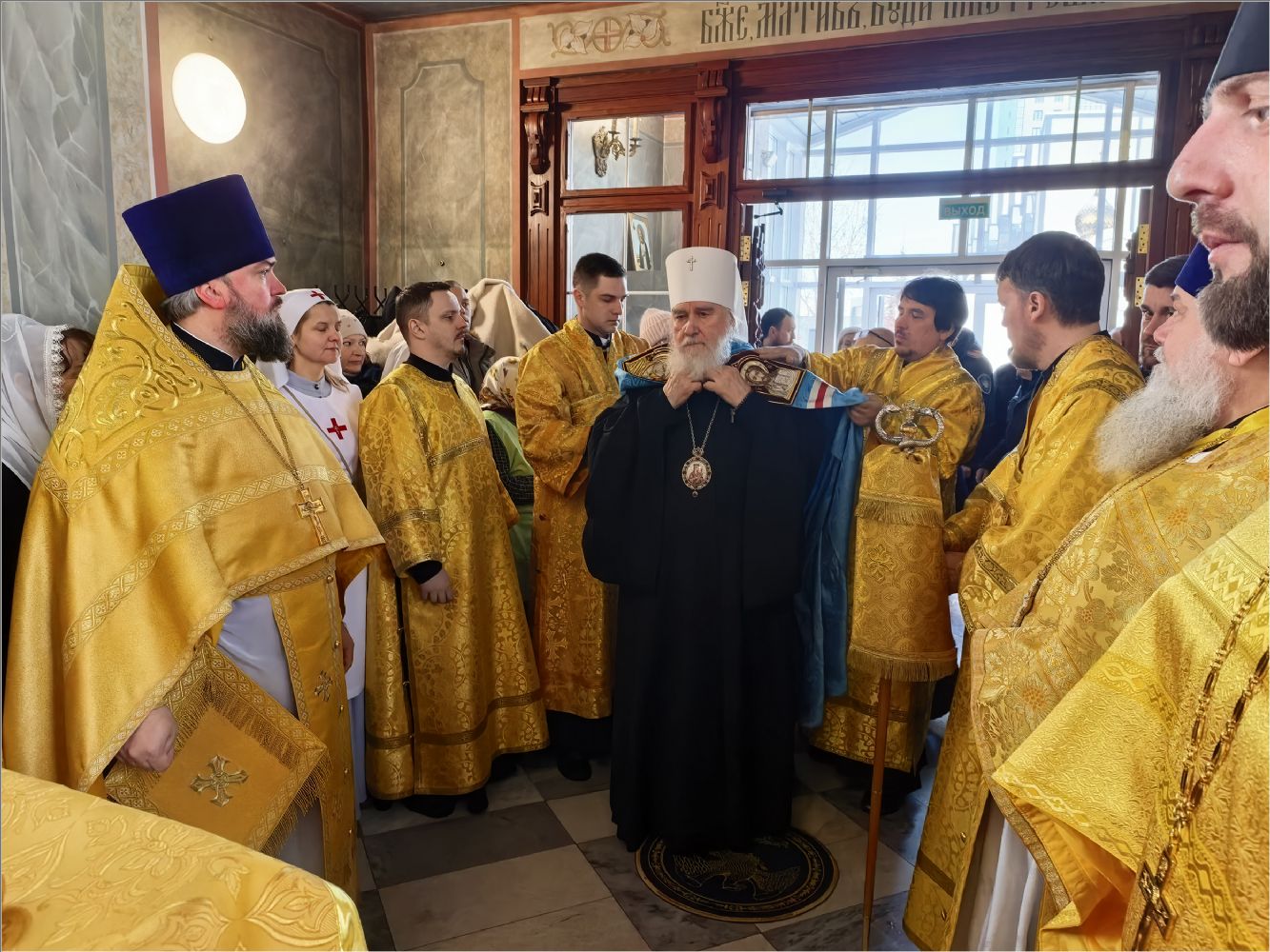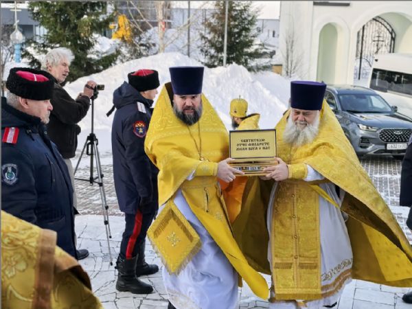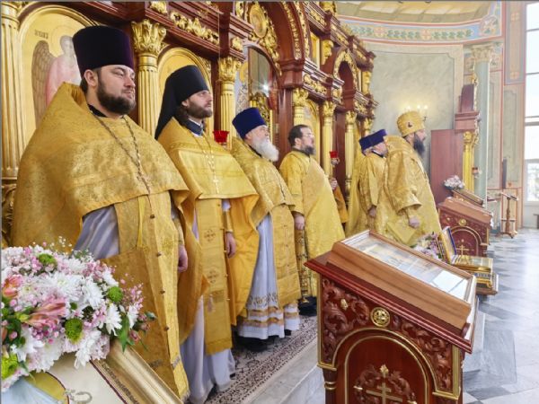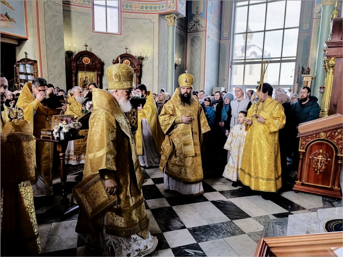 Перед началом Литургии в храм для молитвенного поклонения верующих был принесён ковчег с частицей мощей святителя Филарета, митрополита Московского, доставленный в Набережные Челны в рамках книжной выставки‑форума «Радость Слова».
