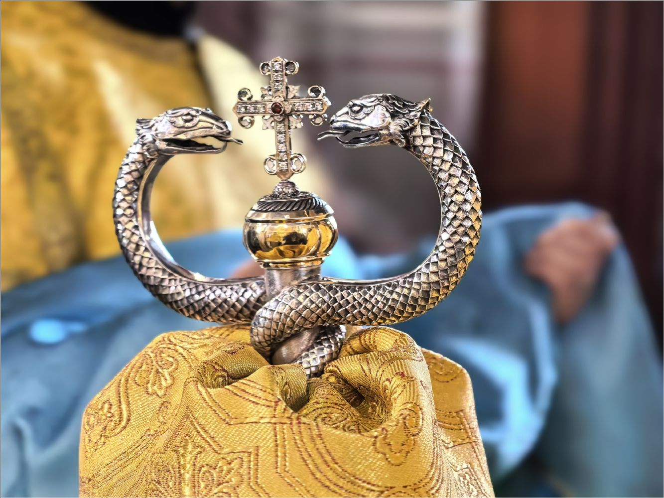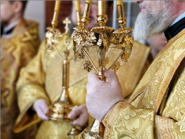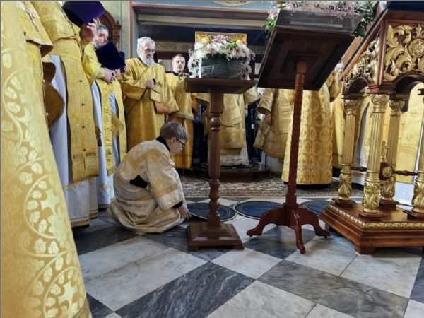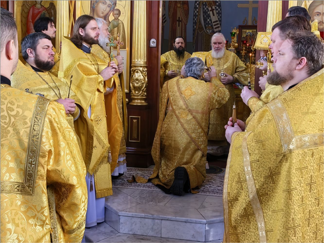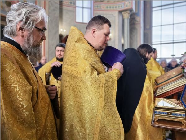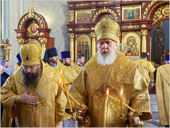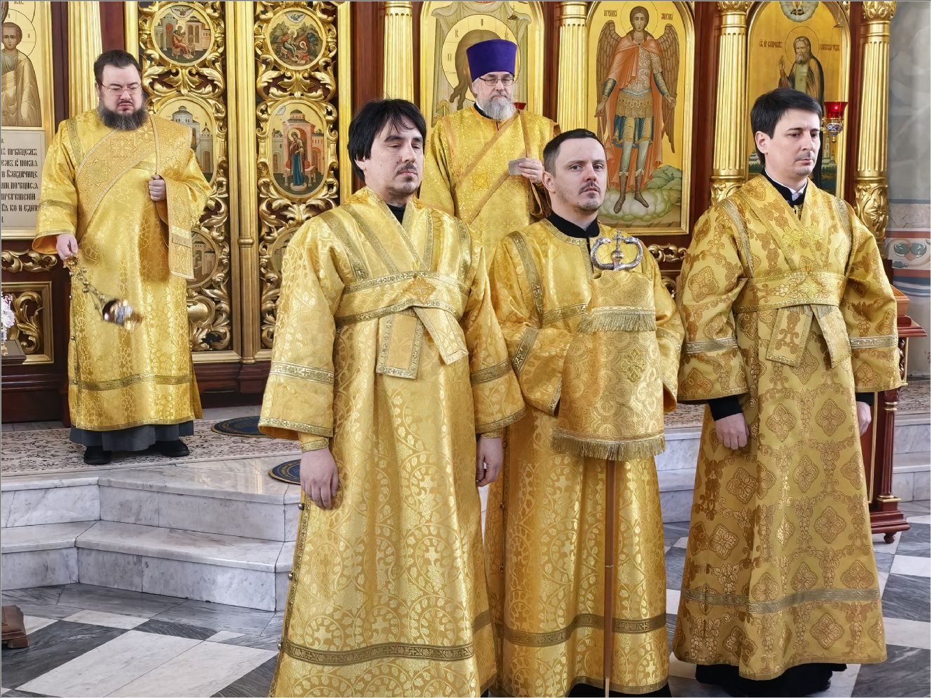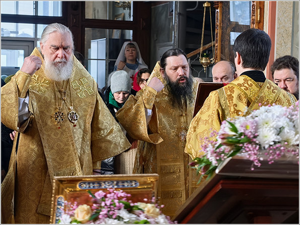 В завершение богослужения было совершено славление святителям Василию Великому, Григорию Богослову, Иоанну Златоустому и Филарету Московскому.
