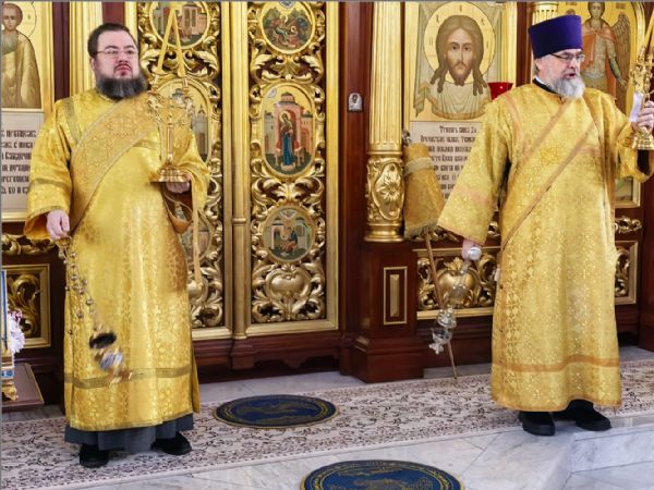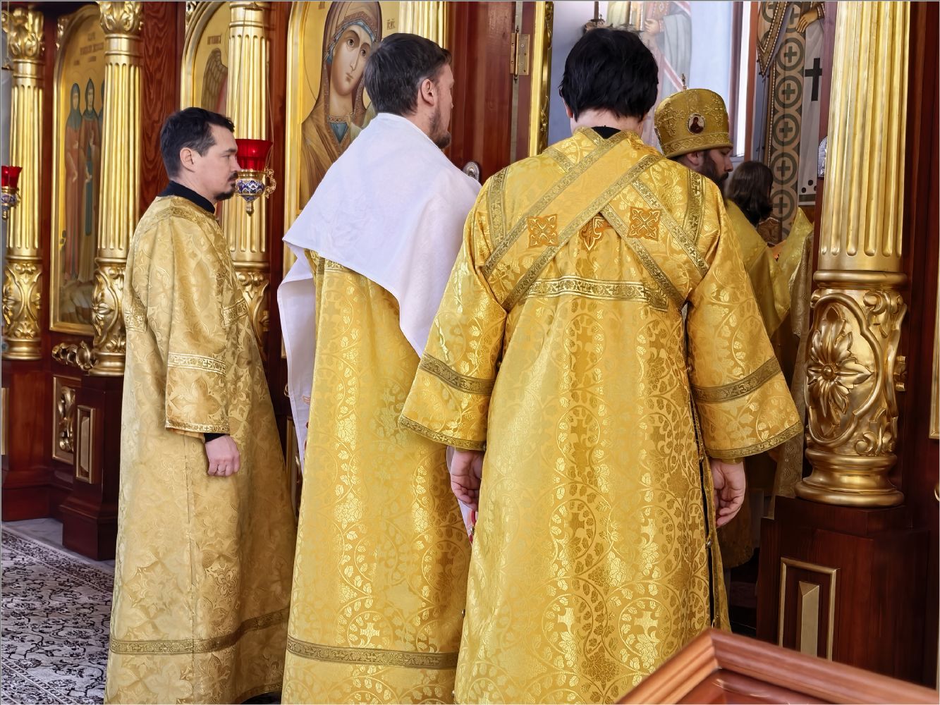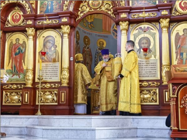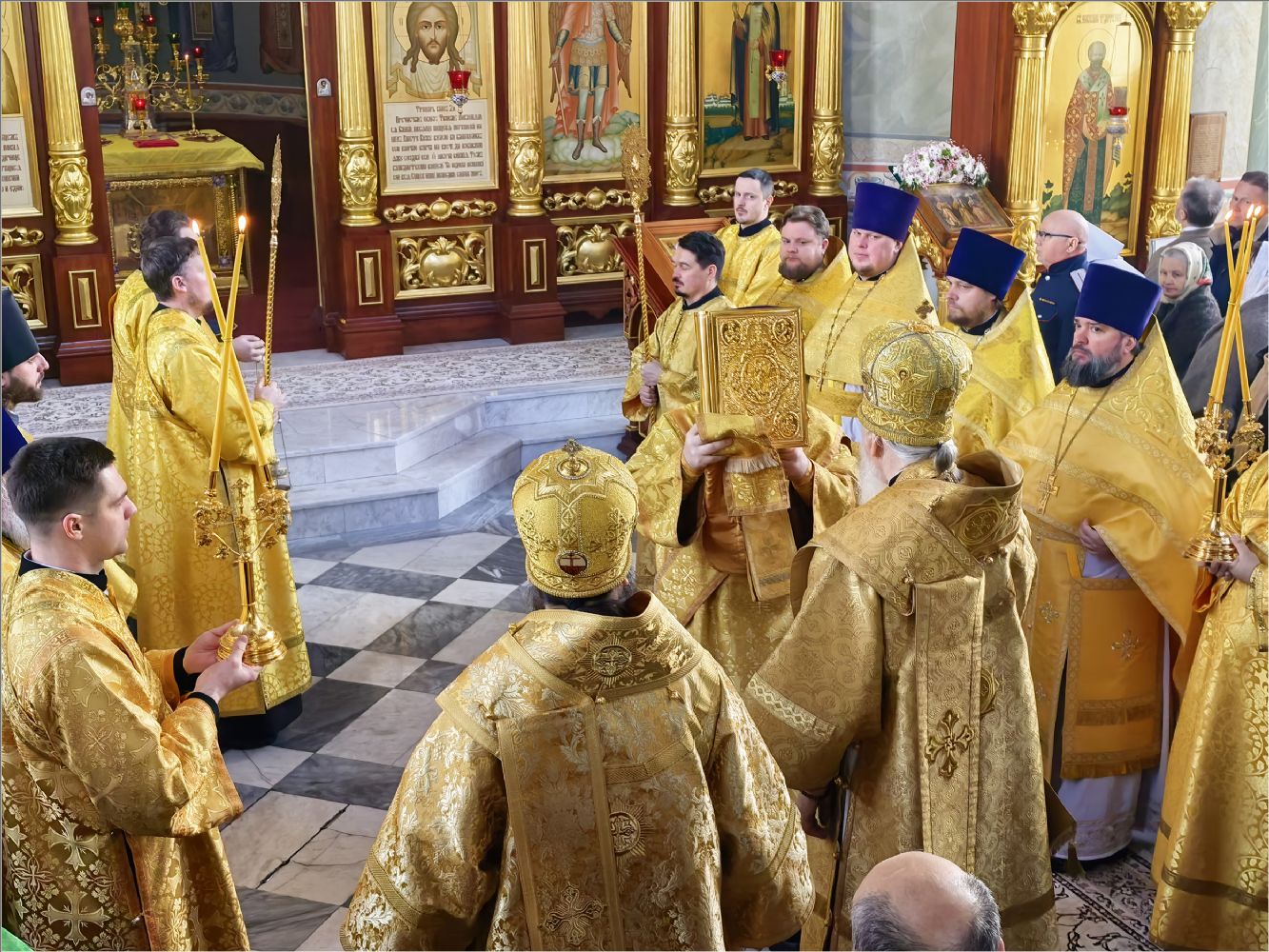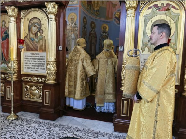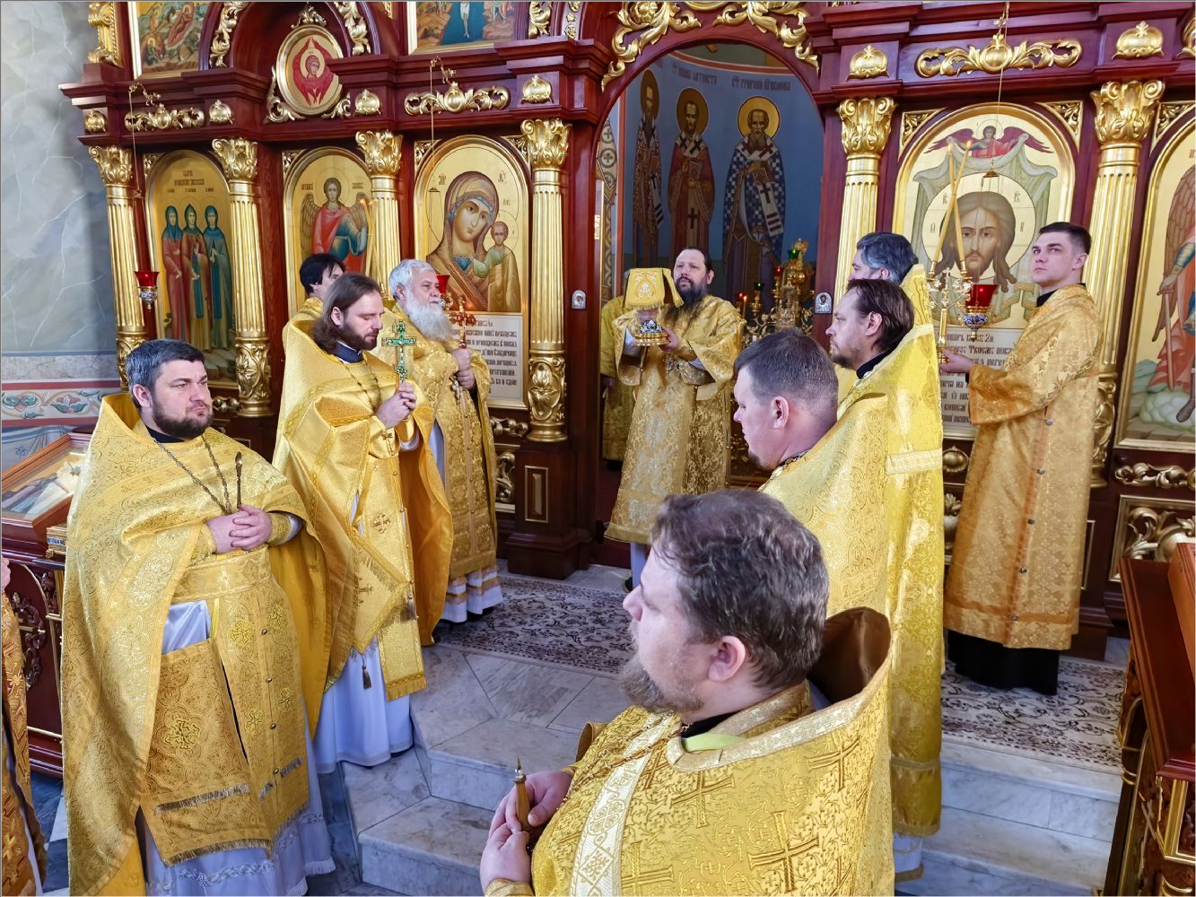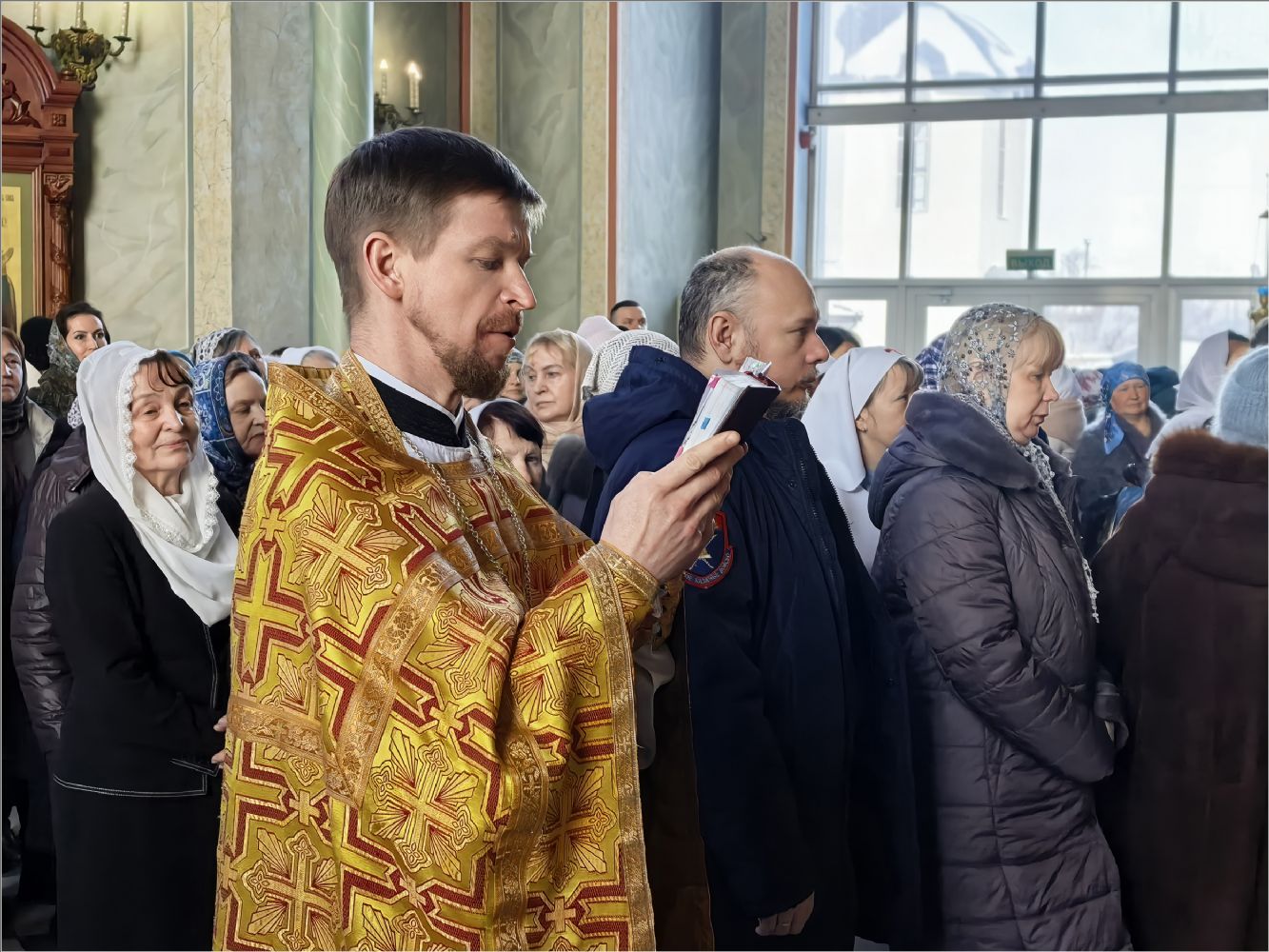 На мирной и сугубой ектениях были вознесены молитвы о Российском воинстве и о мире. Проповедь после запричастного стиха произнёс протоиерей Андрей Дубровин.