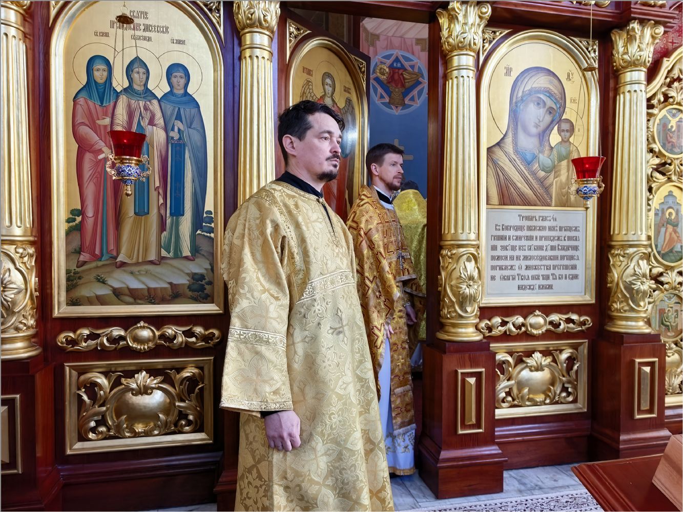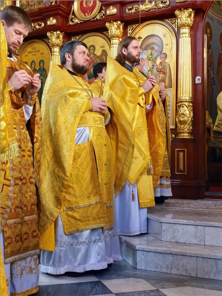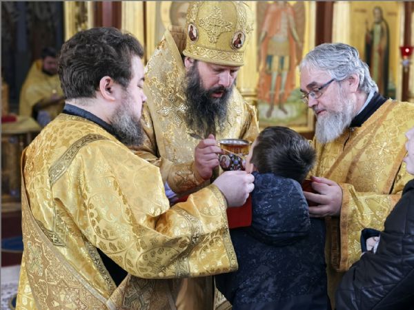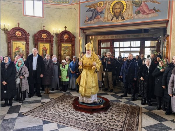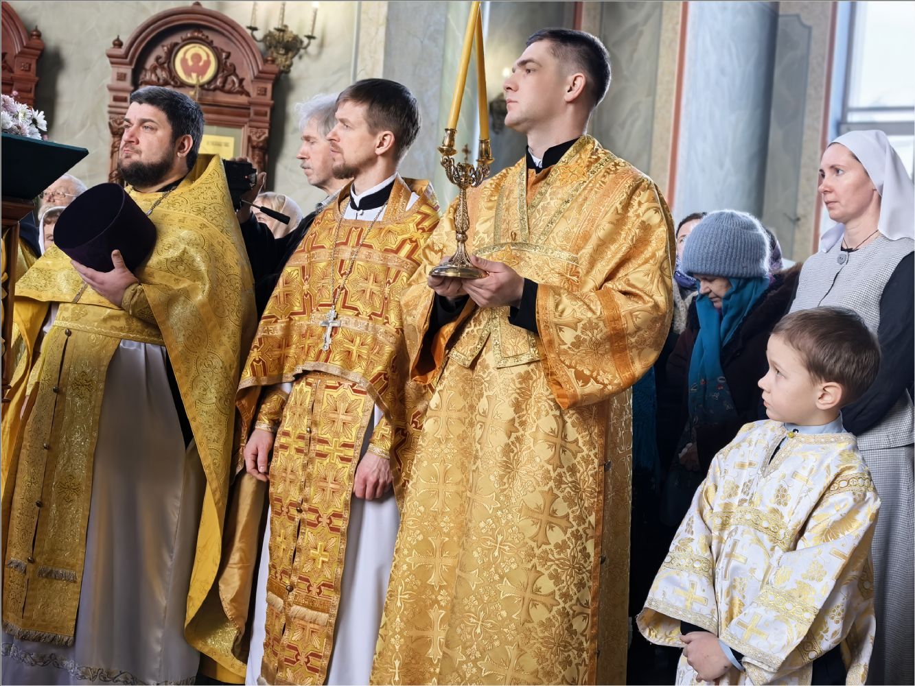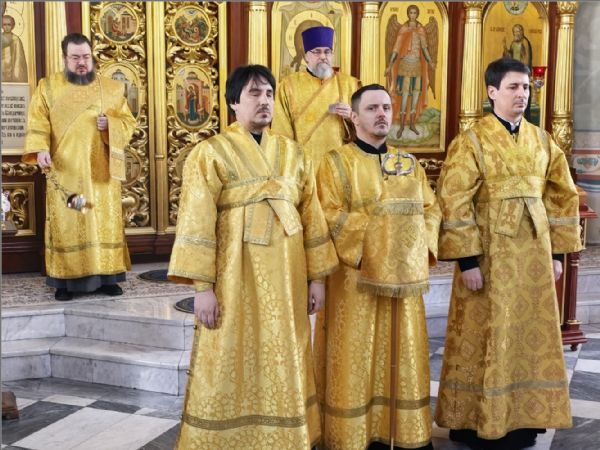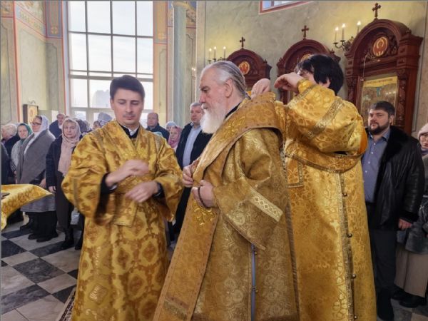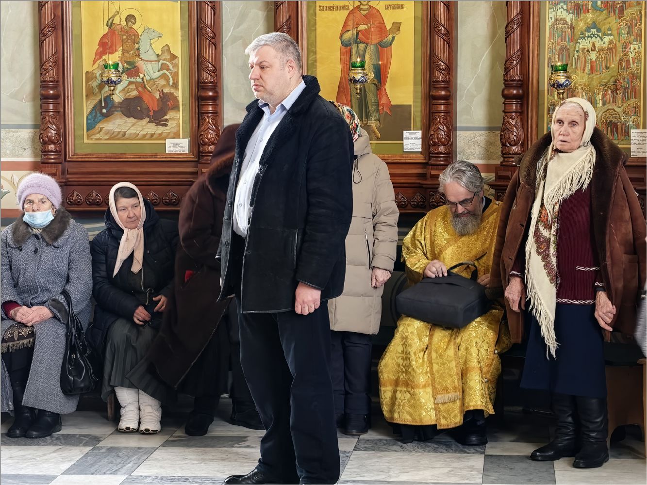 На мирной и сугубой ектениях были вознесены молитвы о Российском воинстве и о мире. Проповедь после запричастного стиха произнёс протоиерей Андрей Дубровин.